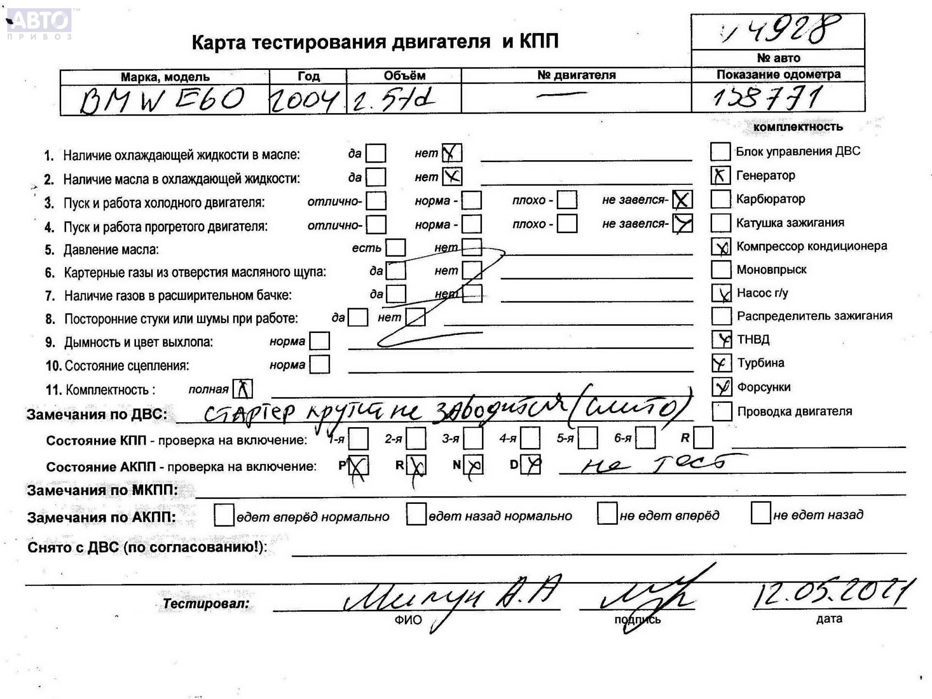 | Марка / Модель / Год: | BMW 5 E60/E61 (2003-2010) 2005 |