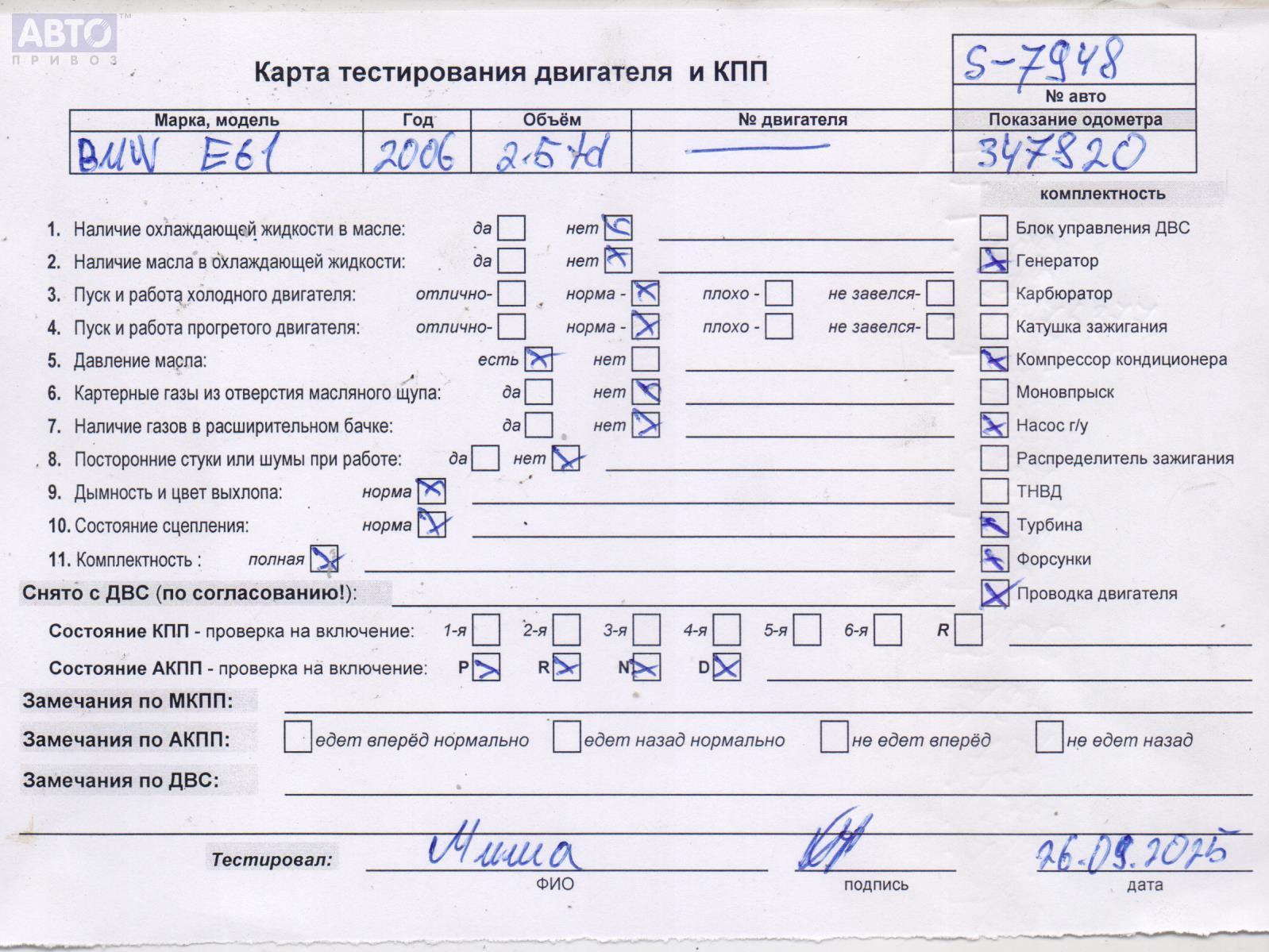 | Марка / Модель / Год: | BMW 5 E60/E61 (2003-2010) 2006 |