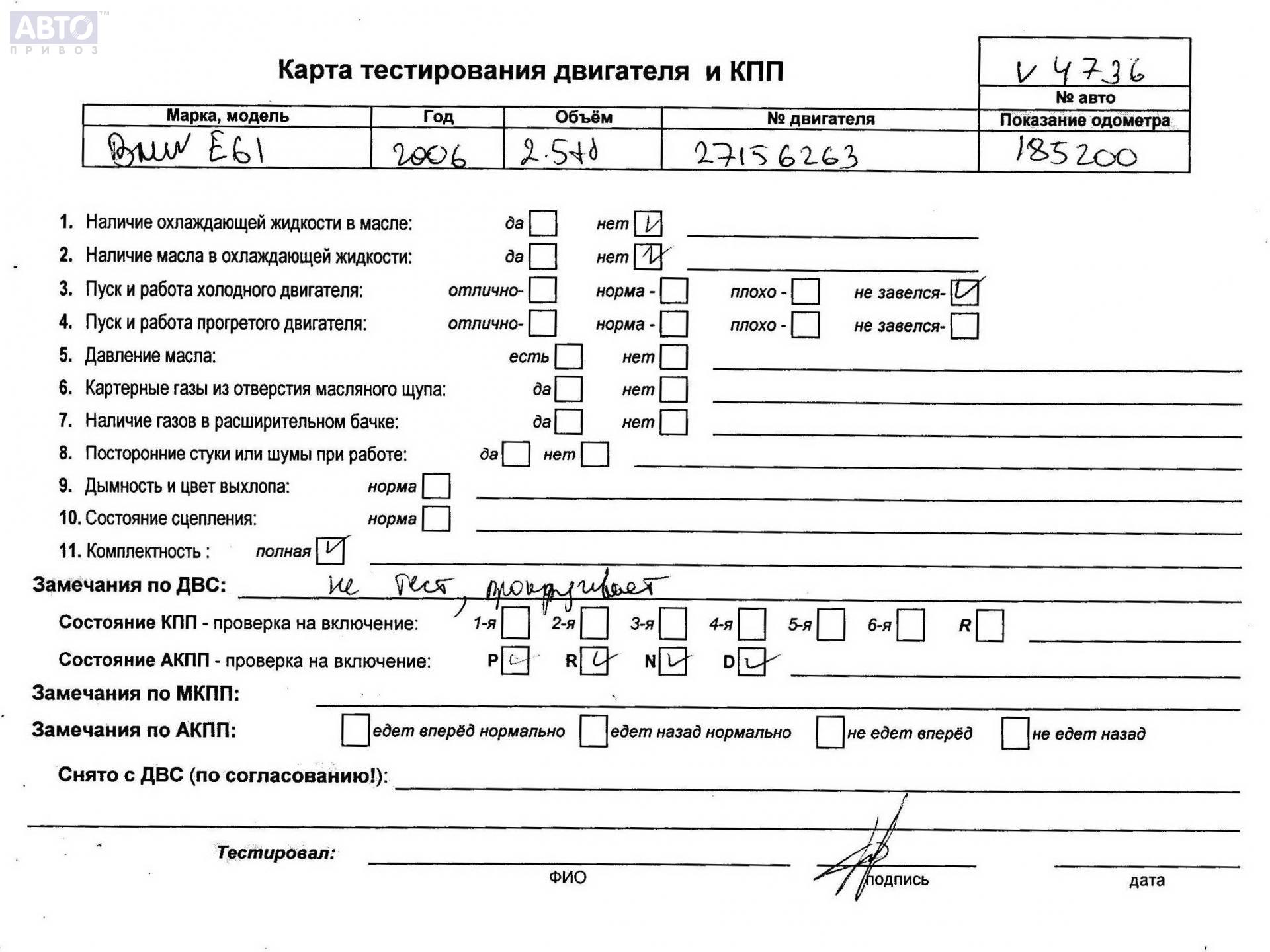 | Марка / Модель / Год: | BMW 5 E60/E61 (2003-2010) 2006 |