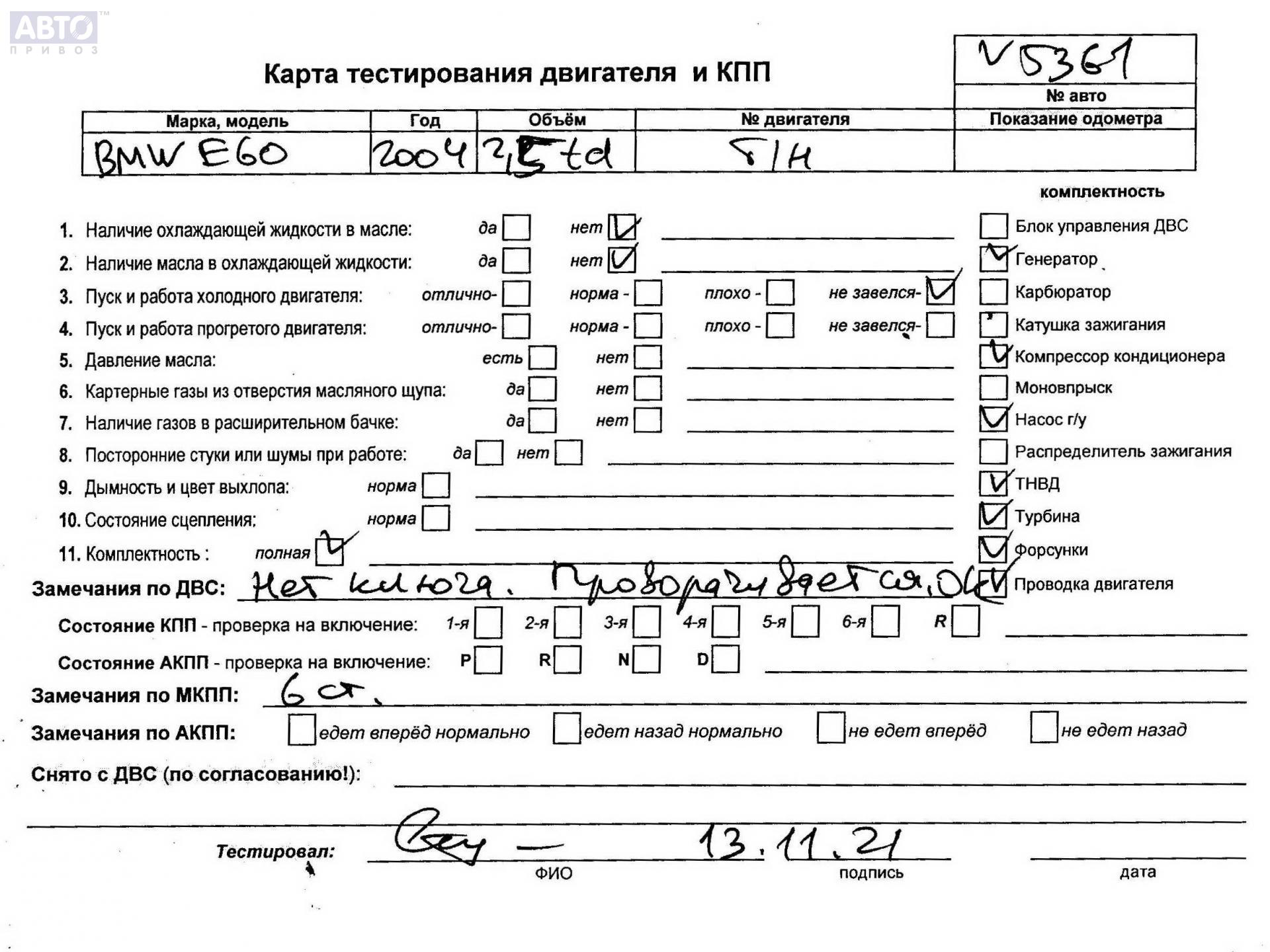 | Марка / Модель / Год: | BMW 5 E60/E61 (2003-2010) 2004 |