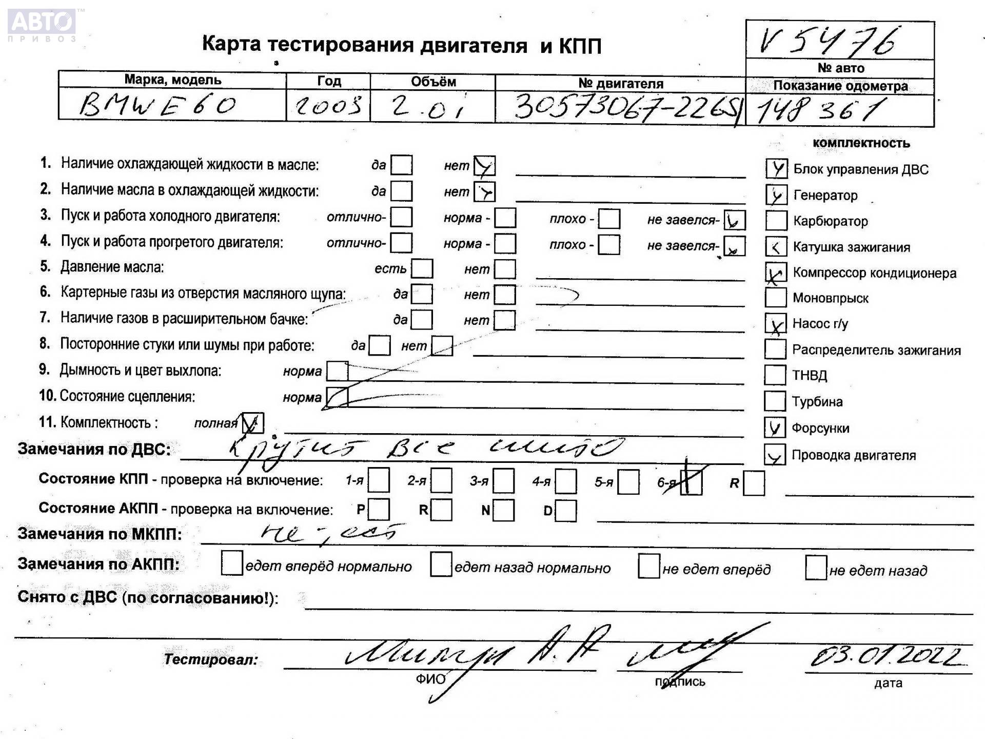 | Марка / Модель / Год: | BMW 5 E60/E61 (2003-2010) 2003 |