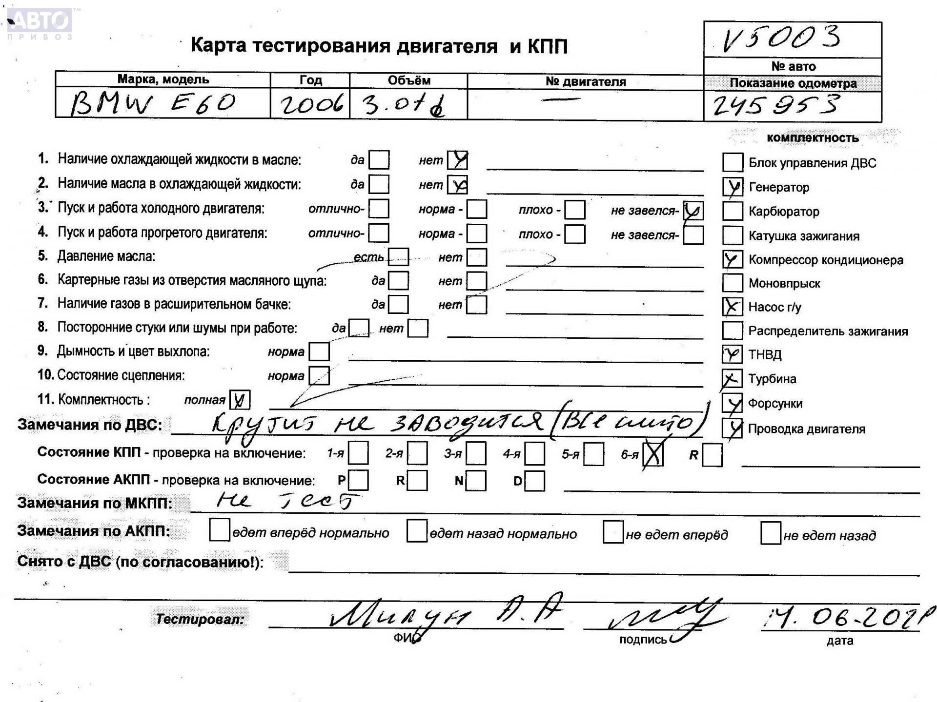 | Автомобиль / VIN: | V5003 WBANR72040CR82807 |