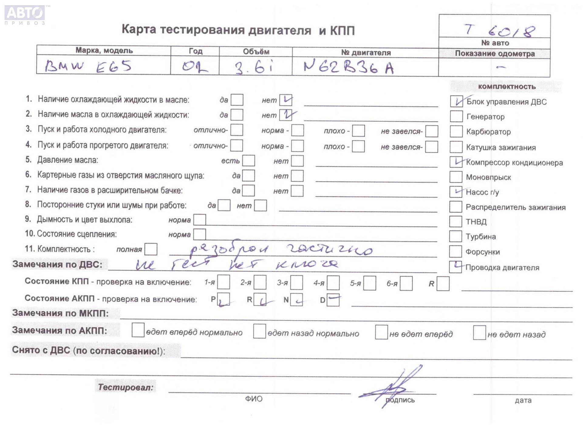 | Марка / Модель / Год: | BMW 7 E65/E66 (2001-2008) 2002 |