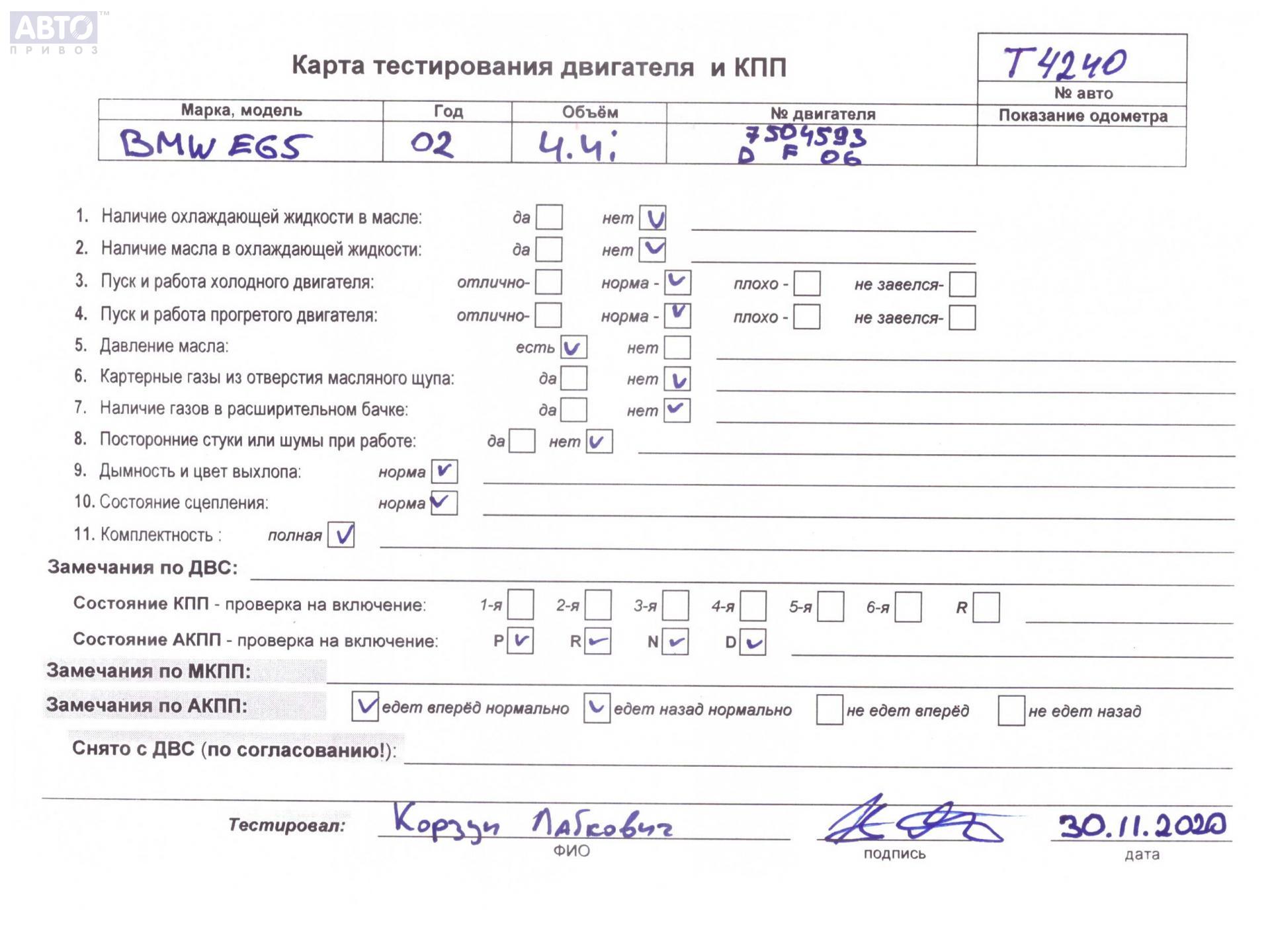 | Марка / Модель / Год: | BMW 7 E65/E66 (2001-2008) 2002 |