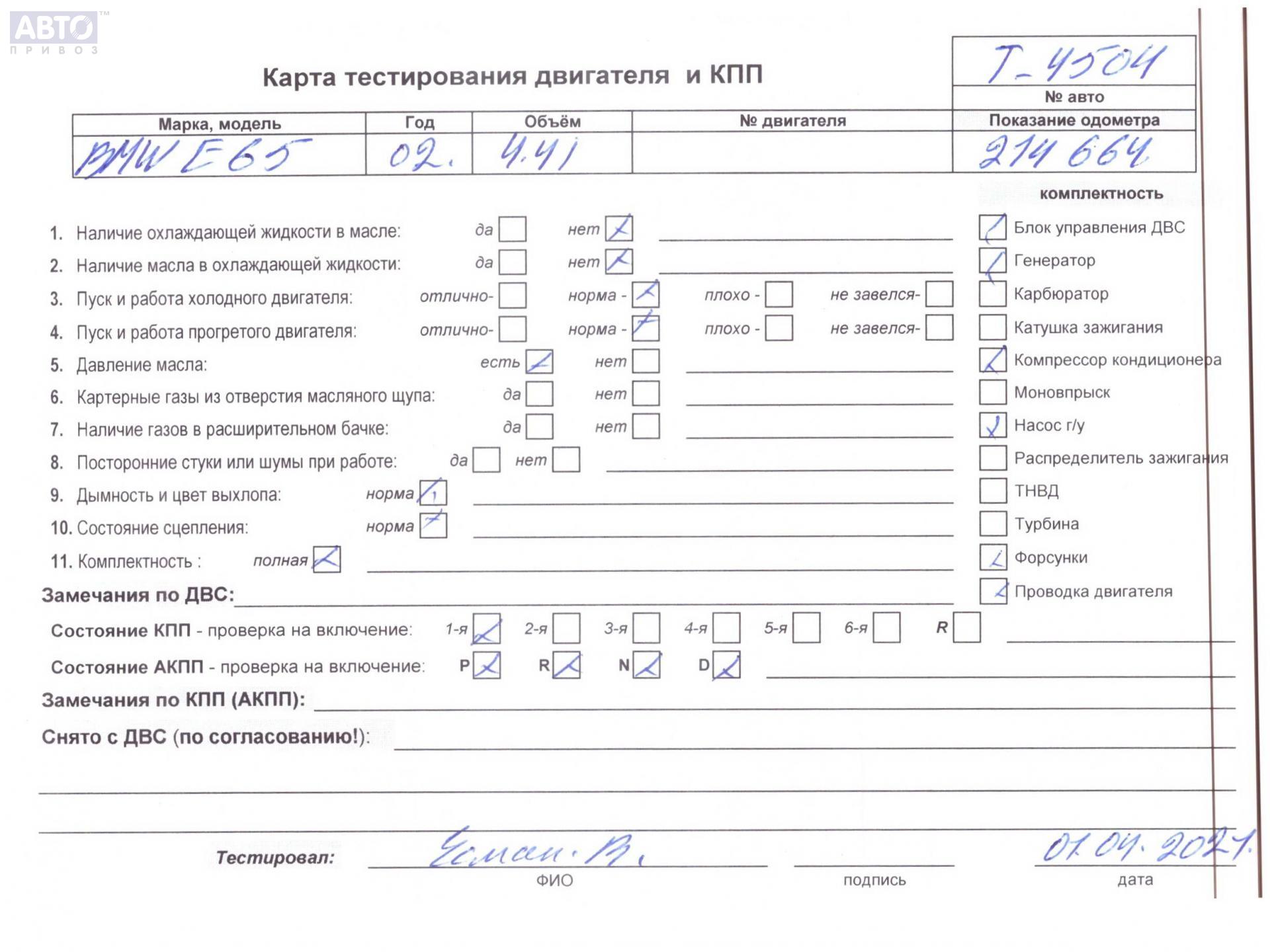 | Марка / Модель / Год: | BMW 7 E65/E66 (2001-2008) 2001 |
