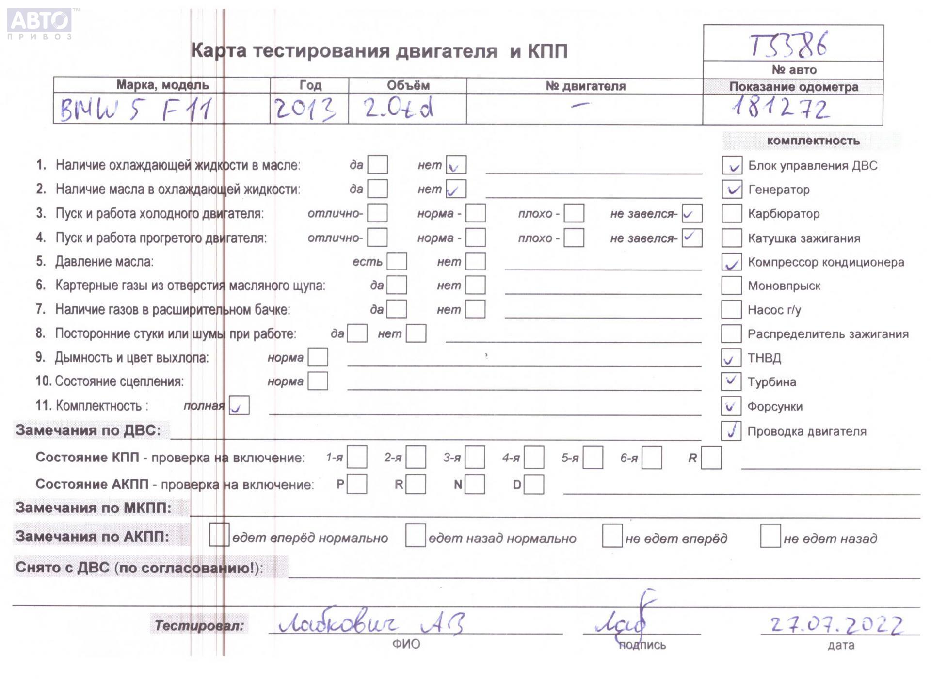 | Марка / Модель / Год: | BMW 5 F10/F11 (2009-2017) 2013 |
