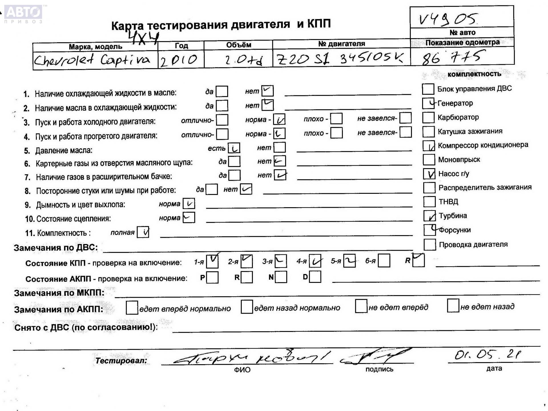 | Марка / Модель / Год: | Chevrolet Captiva 2010 |