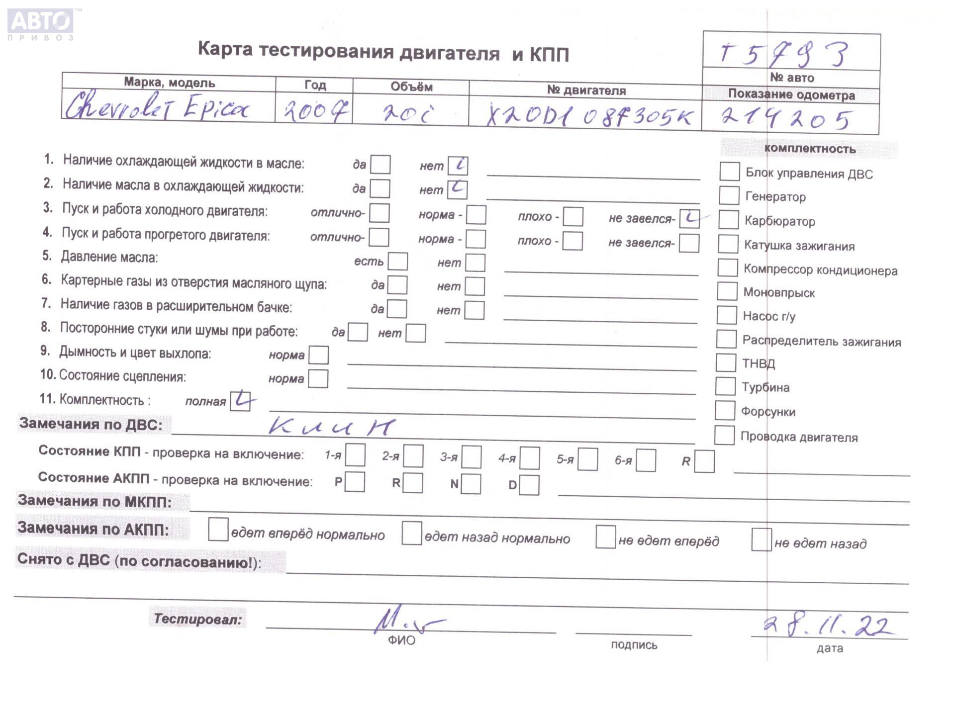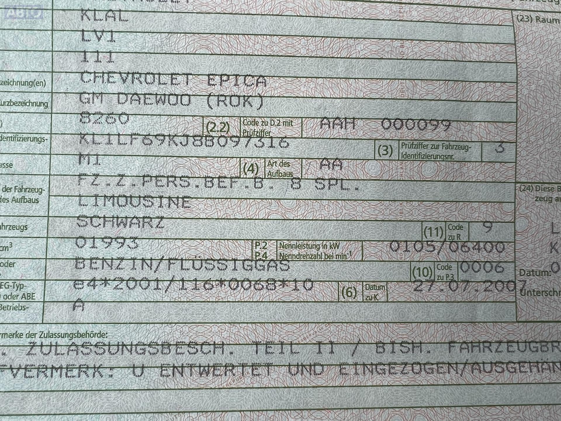 | Марка / Модель / Год: | Chevrolet Epica 2007 |