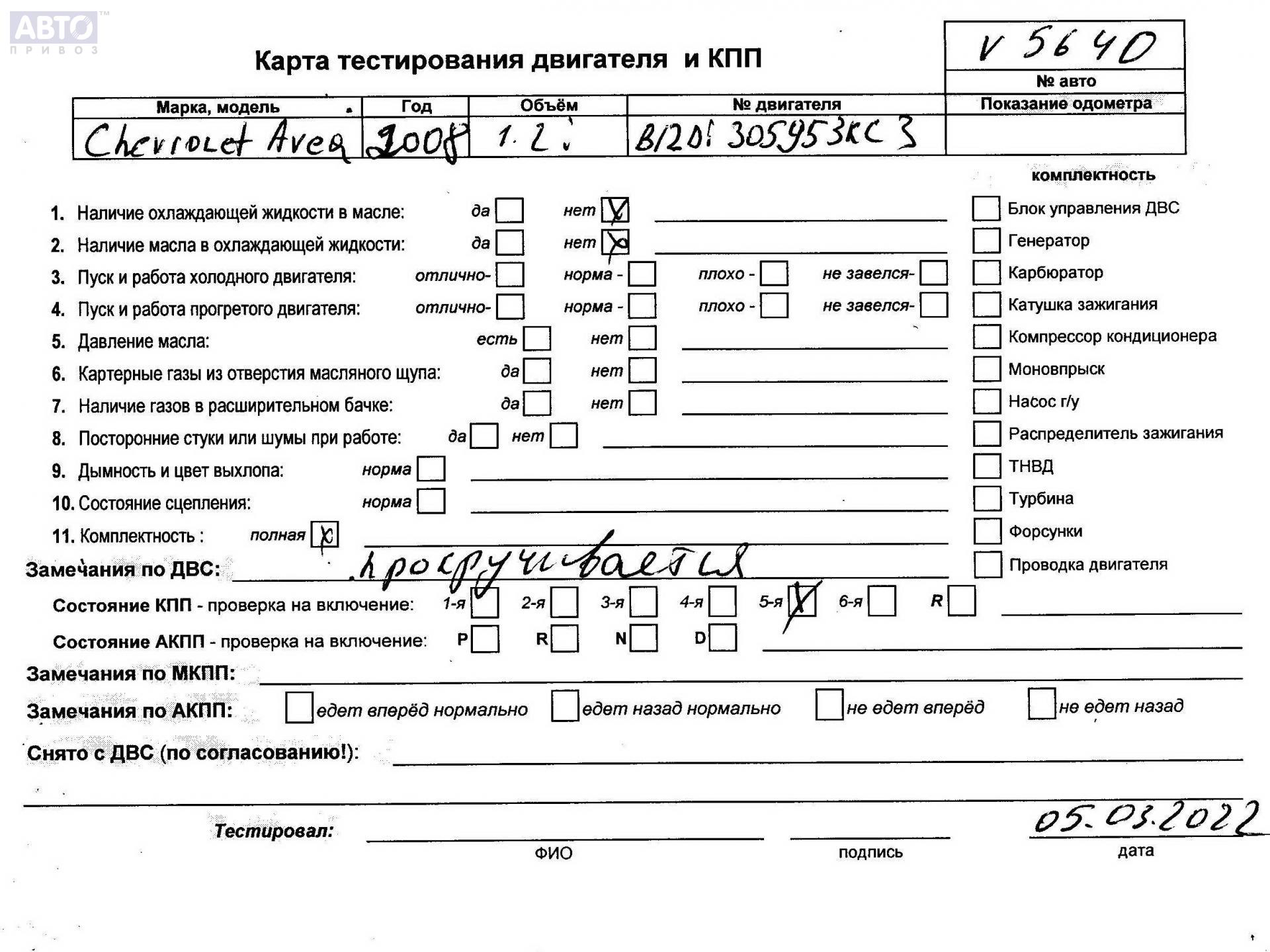 | Марка / Модель / Год: | Chevrolet Kalos (Aveo) 2009 |