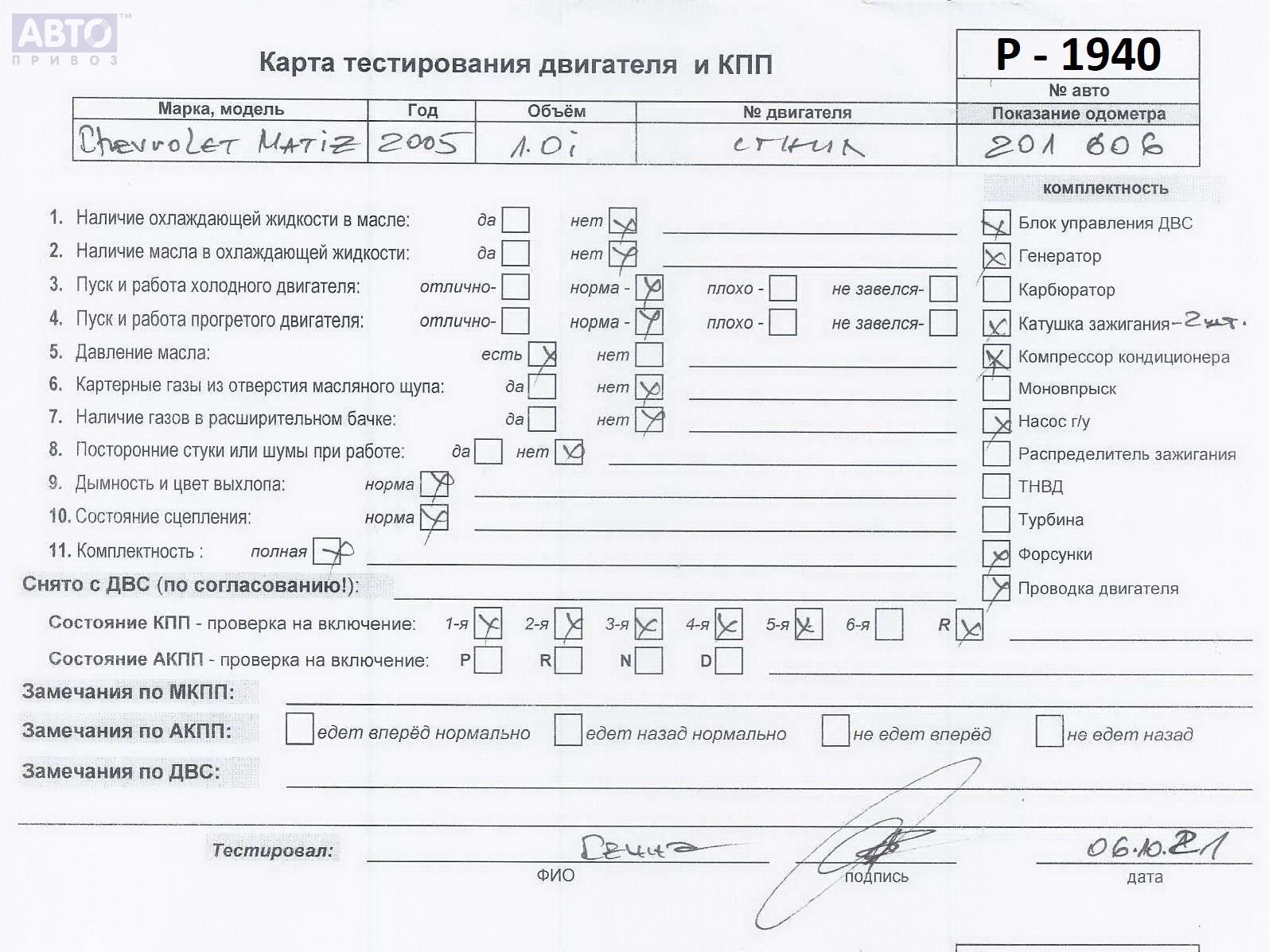 | Марка / Модель / Год: | Chevrolet Matiz 2006 |