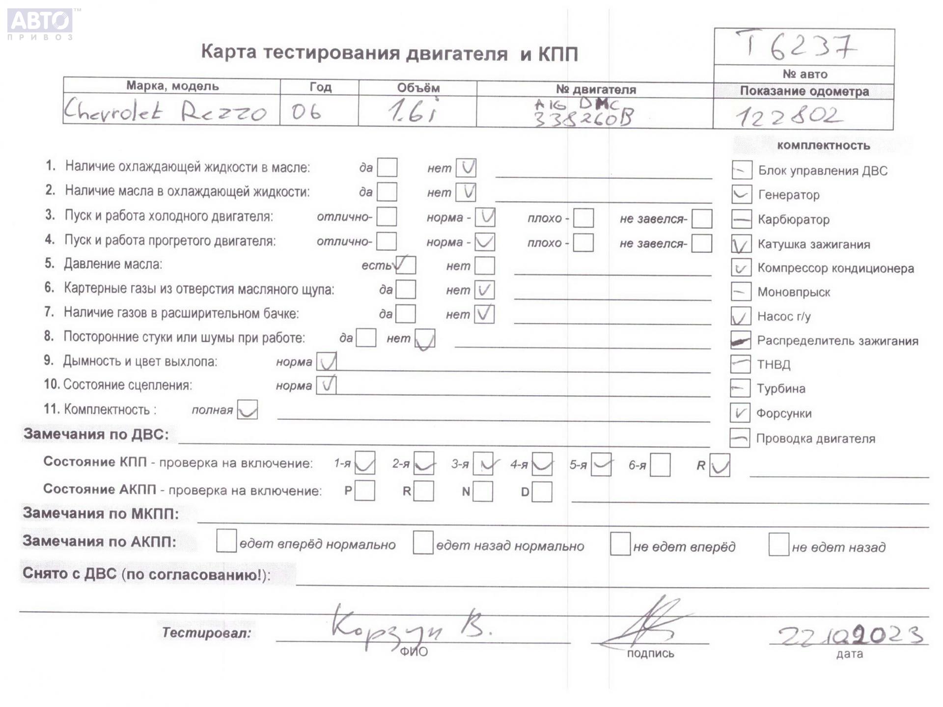 | Марка / Модель / Год: | Chevrolet Tacuma / Rezzo 2006 |