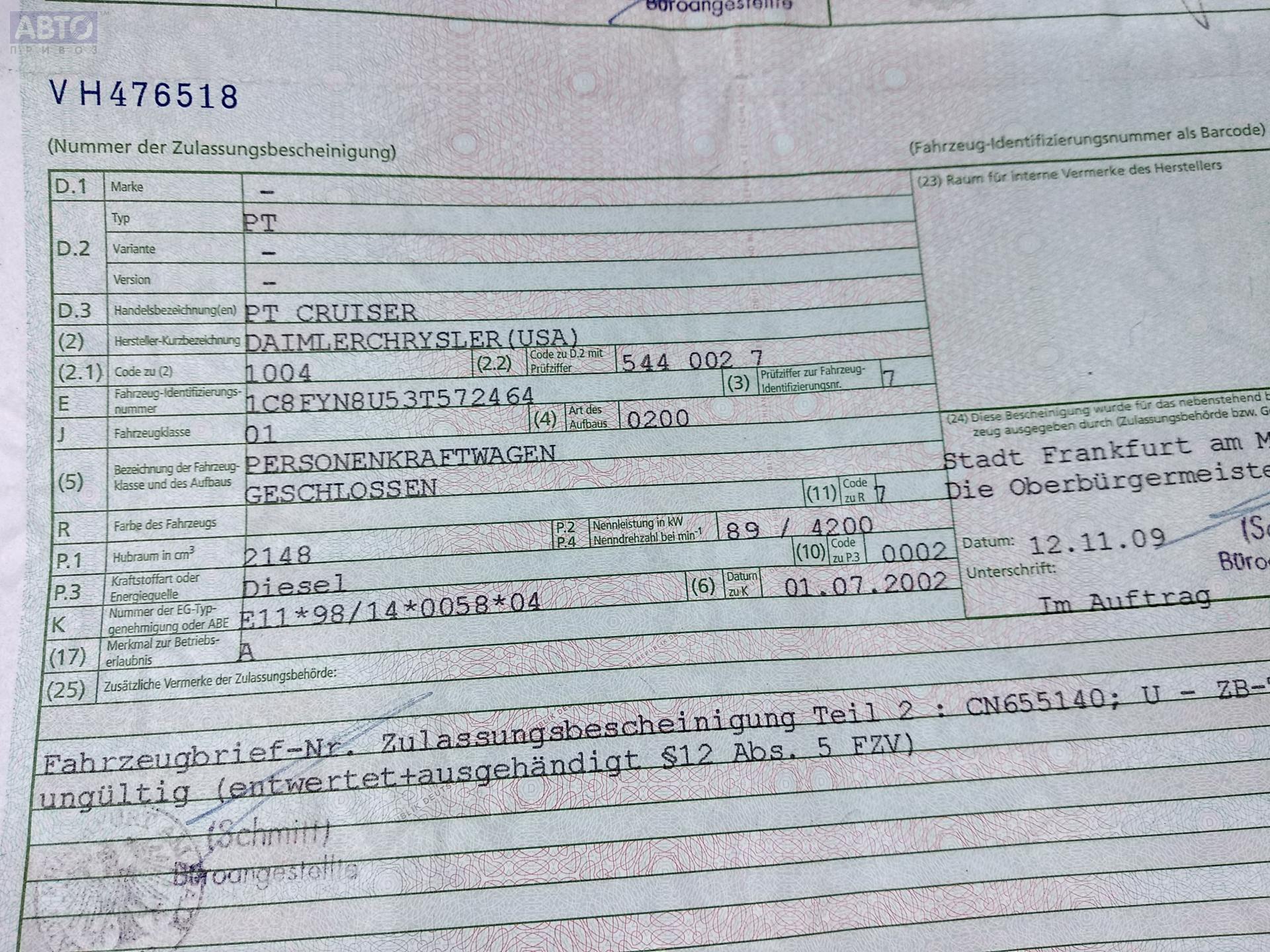 | Марка / Модель / Год: | Chrysler PT Cruiser 2003 |
