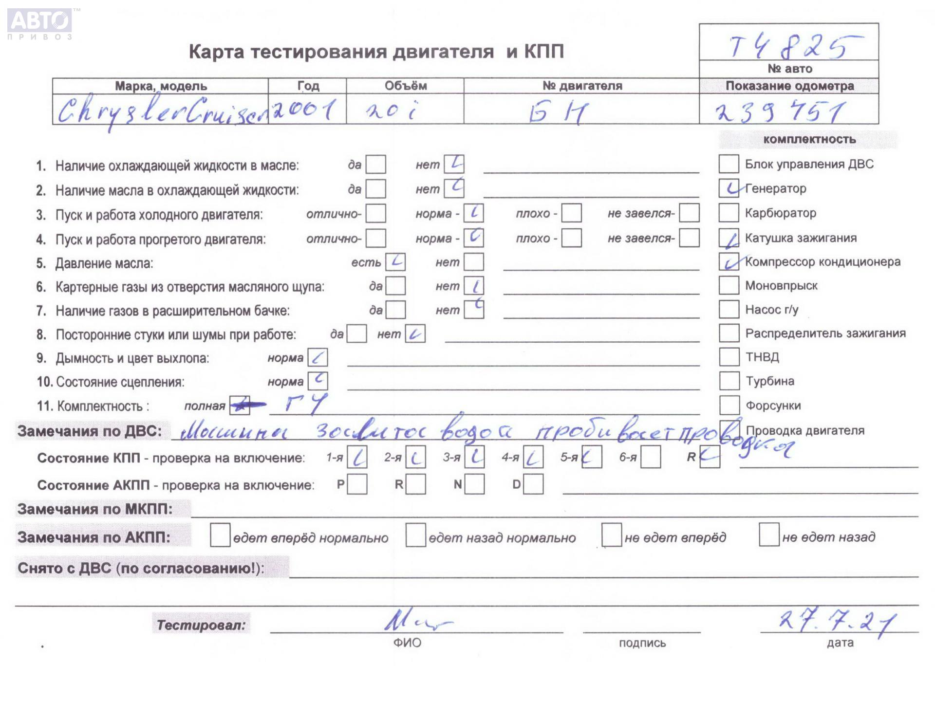 | Марка / Модель / Год: | Chrysler PT Cruiser 2001 |