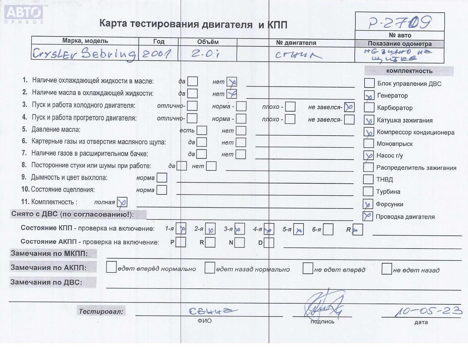 | Автомобиль / VIN: | P2709 1C3ELN5C3XT551923 |