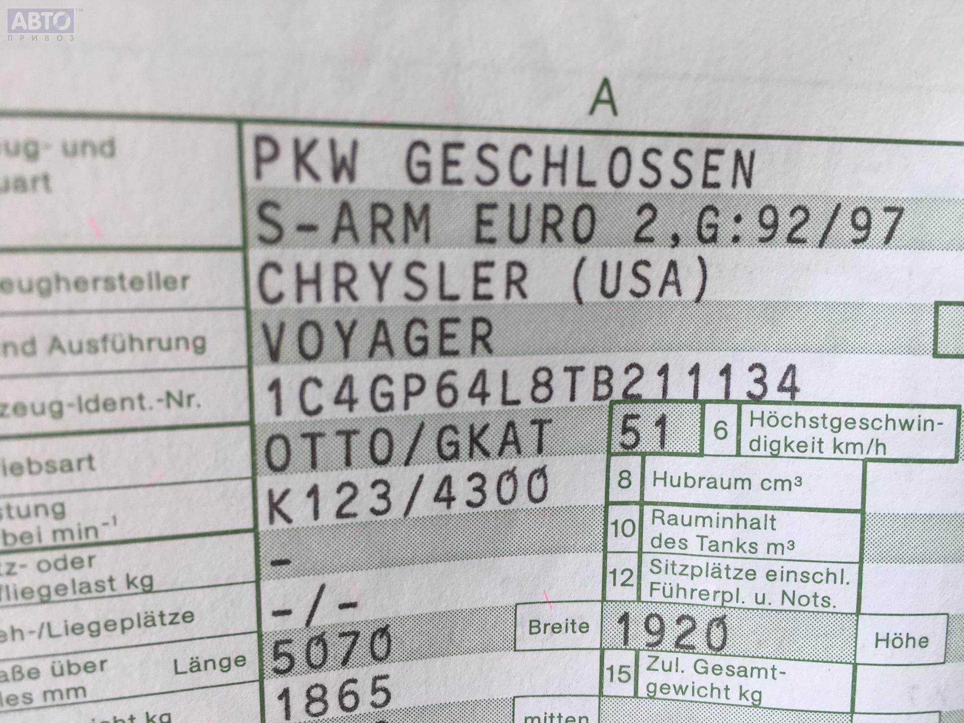 | Марка / Модель / Год: | Chrysler Voyager (1996-2000) 1995 |