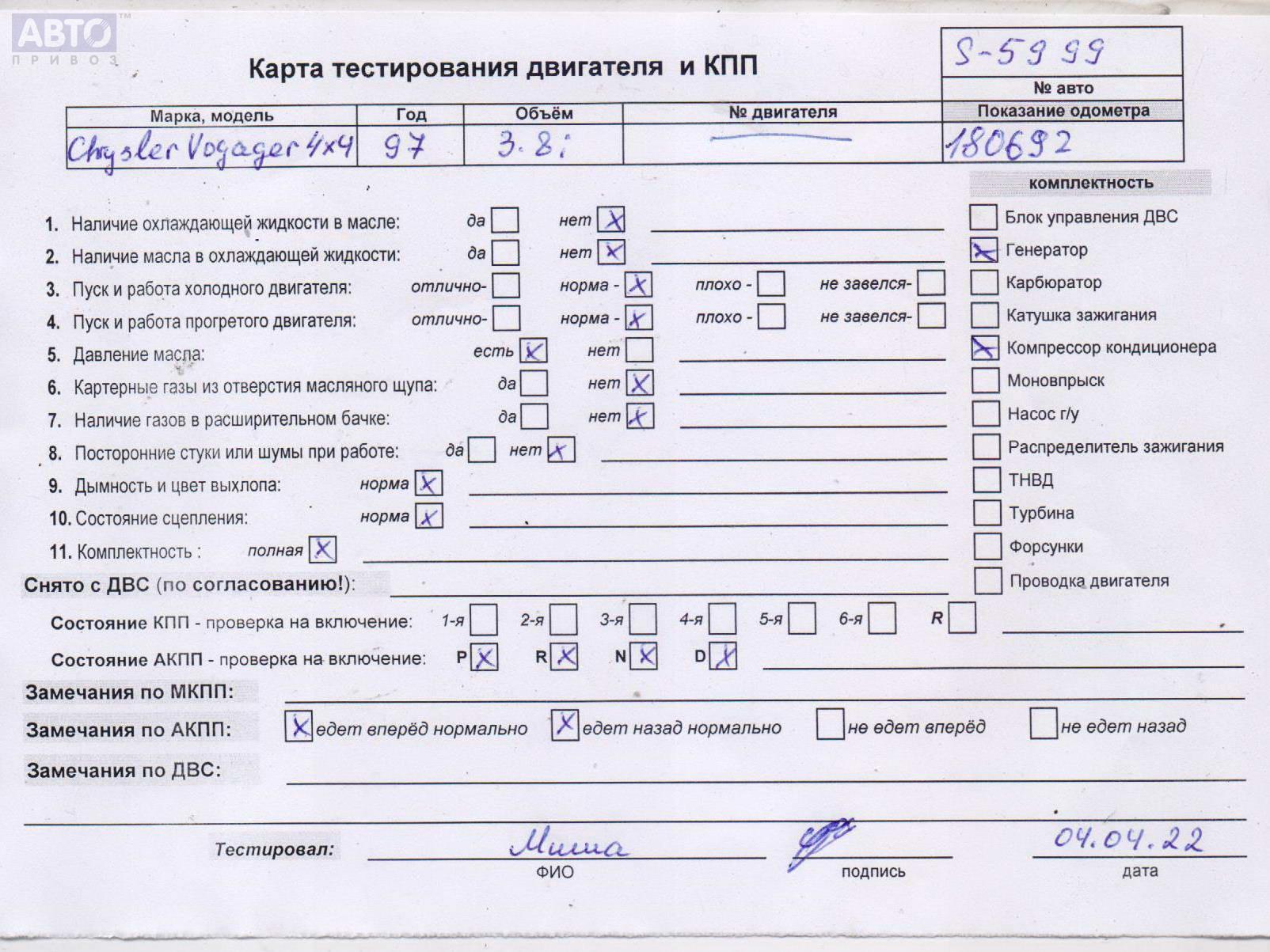 | Марка / Модель / Год: | Chrysler Voyager (1996-2000) 1997 |