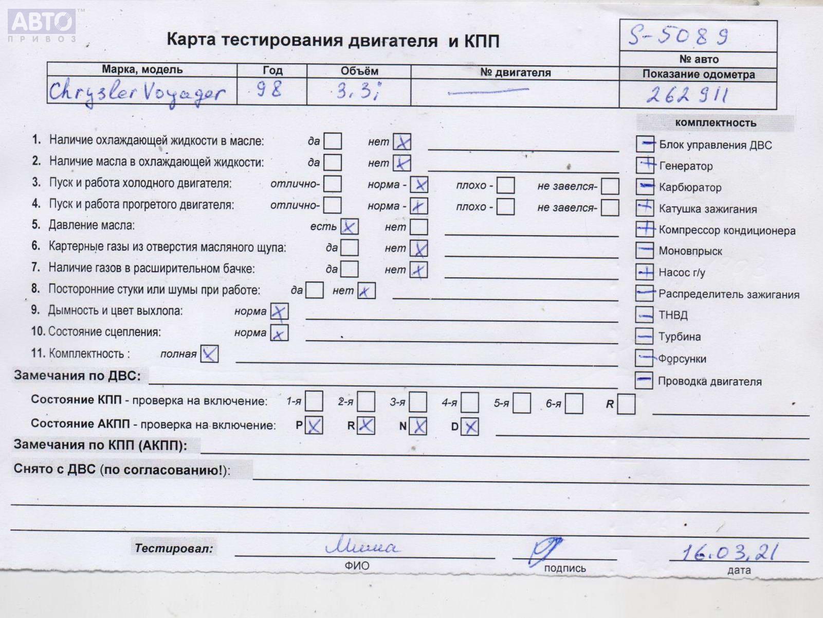 | Марка / Модель / Год: | Chrysler Voyager (1996-2000) 1998 |