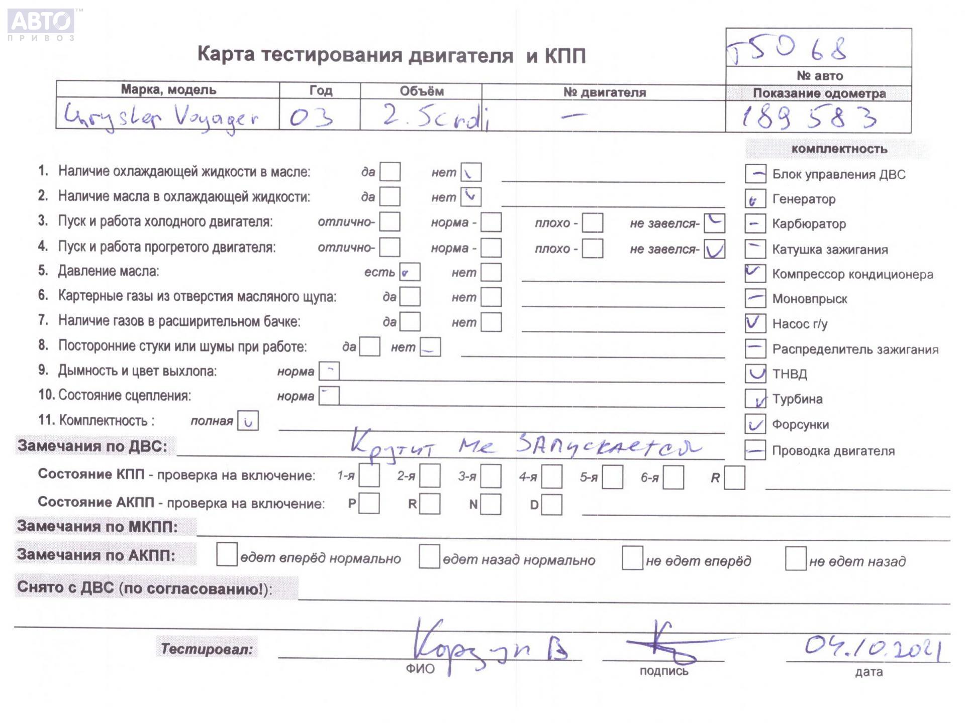 | Марка / Модель / Год: | Chrysler Voyager (2001-2007) 2003 |