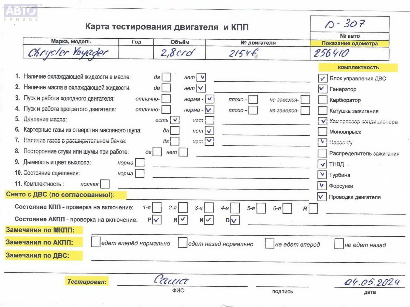 | Марка / Модель / Год: | Chrysler Voyager (2001-2007) 2007 |