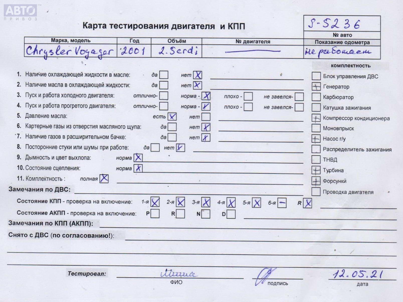 | Марка / Модель / Год: | Chrysler Voyager (2001-2007) 2001 |