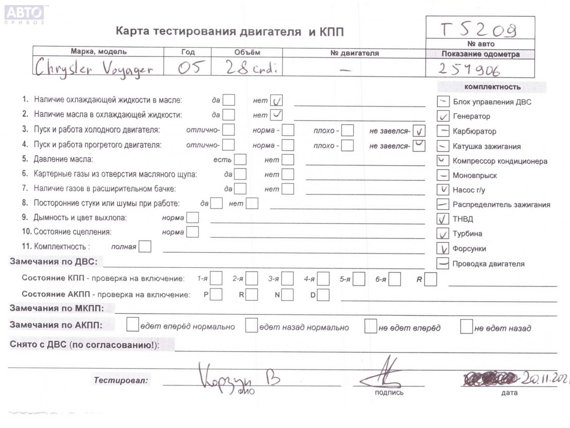 | Автомобиль / VIN: | T5209 1C8GYB2595Y527005 |
