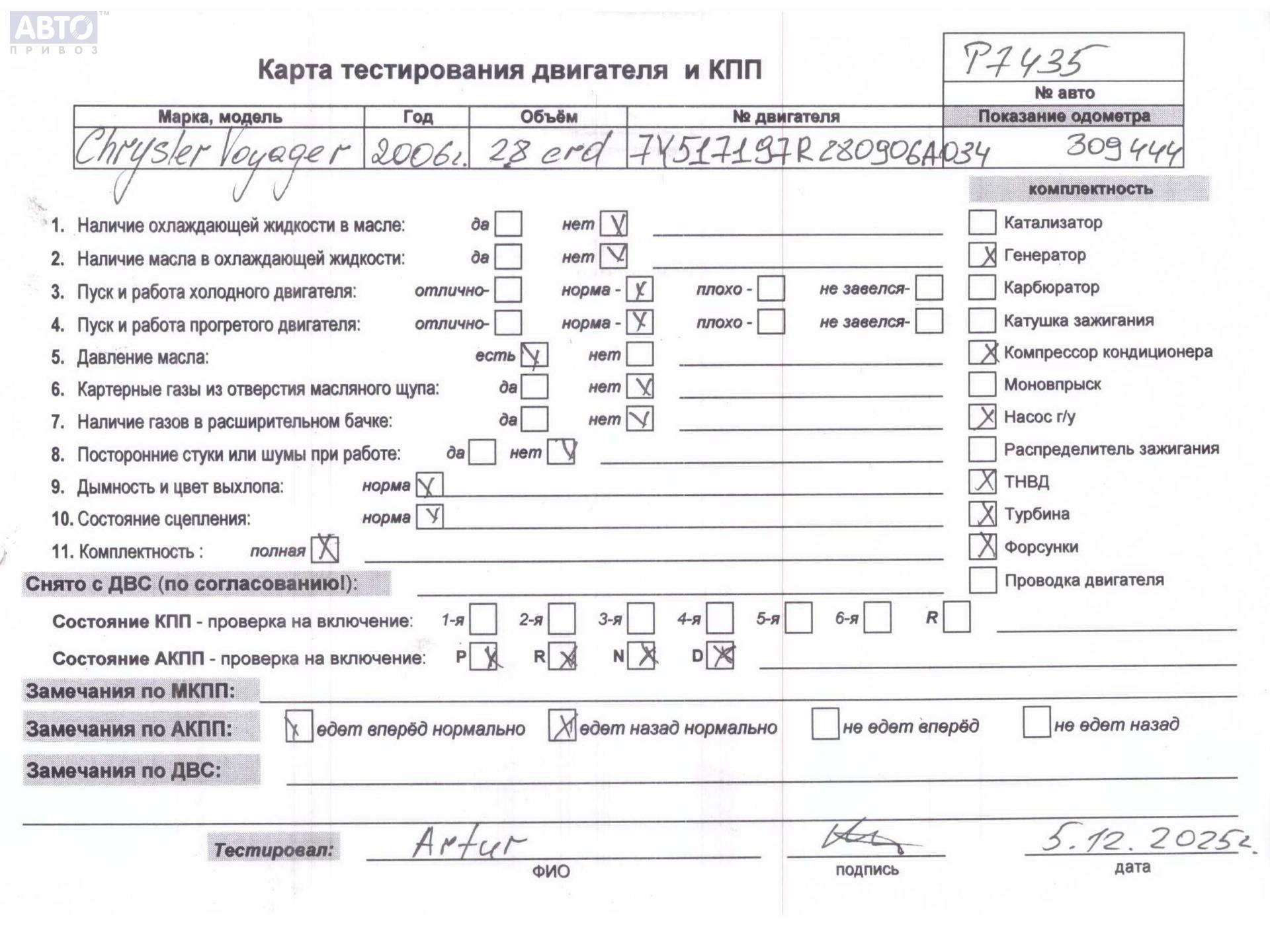 | Марка / Модель / Год: | Chrysler Voyager (2001-2007) 2007 |