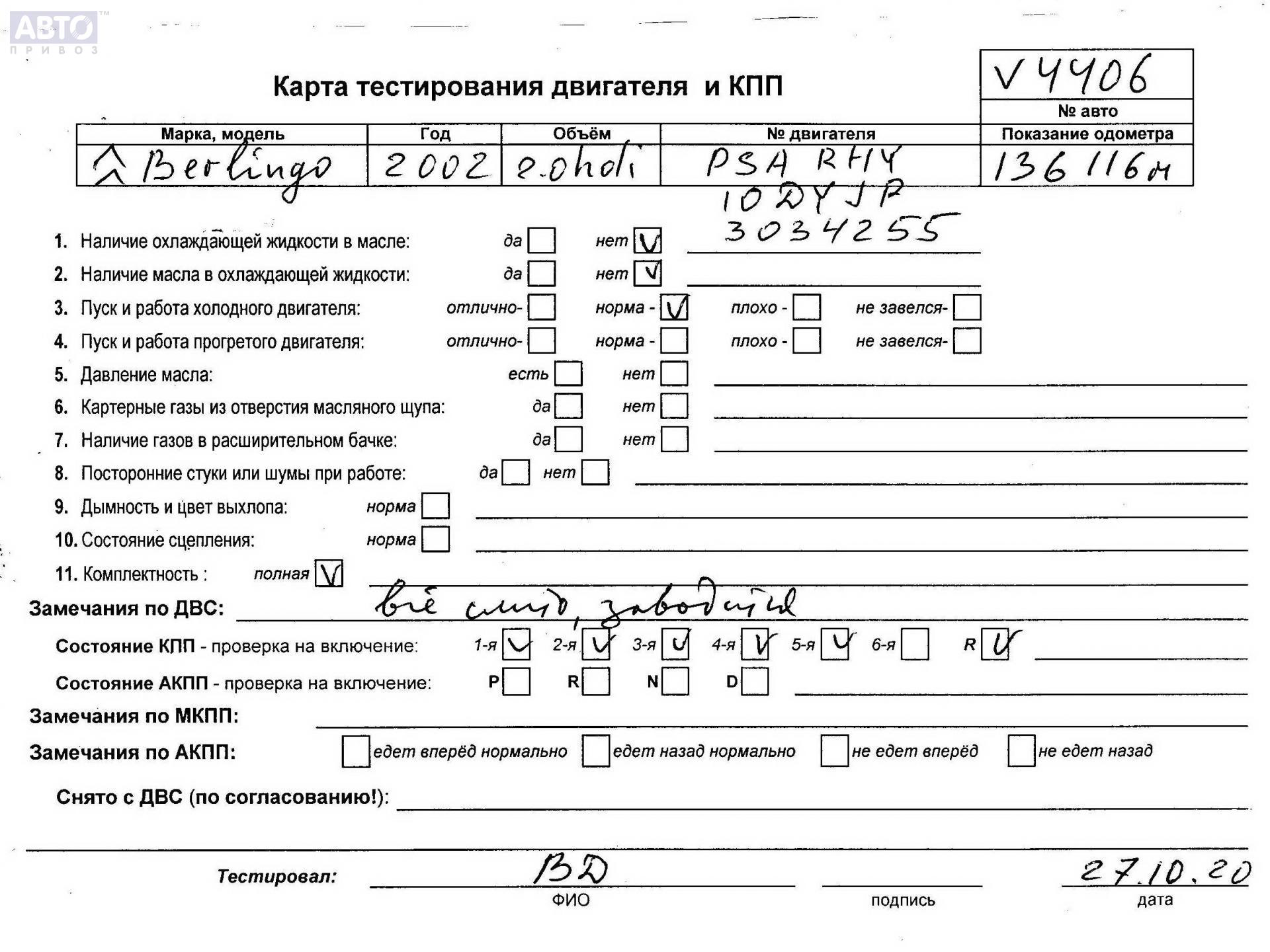 | Марка / Модель / Год: | Citroen Berlingo (1996-2002) 2002 |