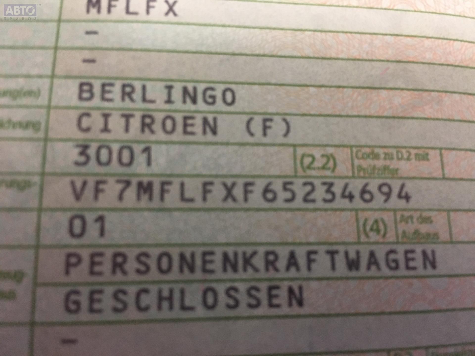 | Марка / Модель / Год: | Citroen Berlingo (1996-2002) 1998 |