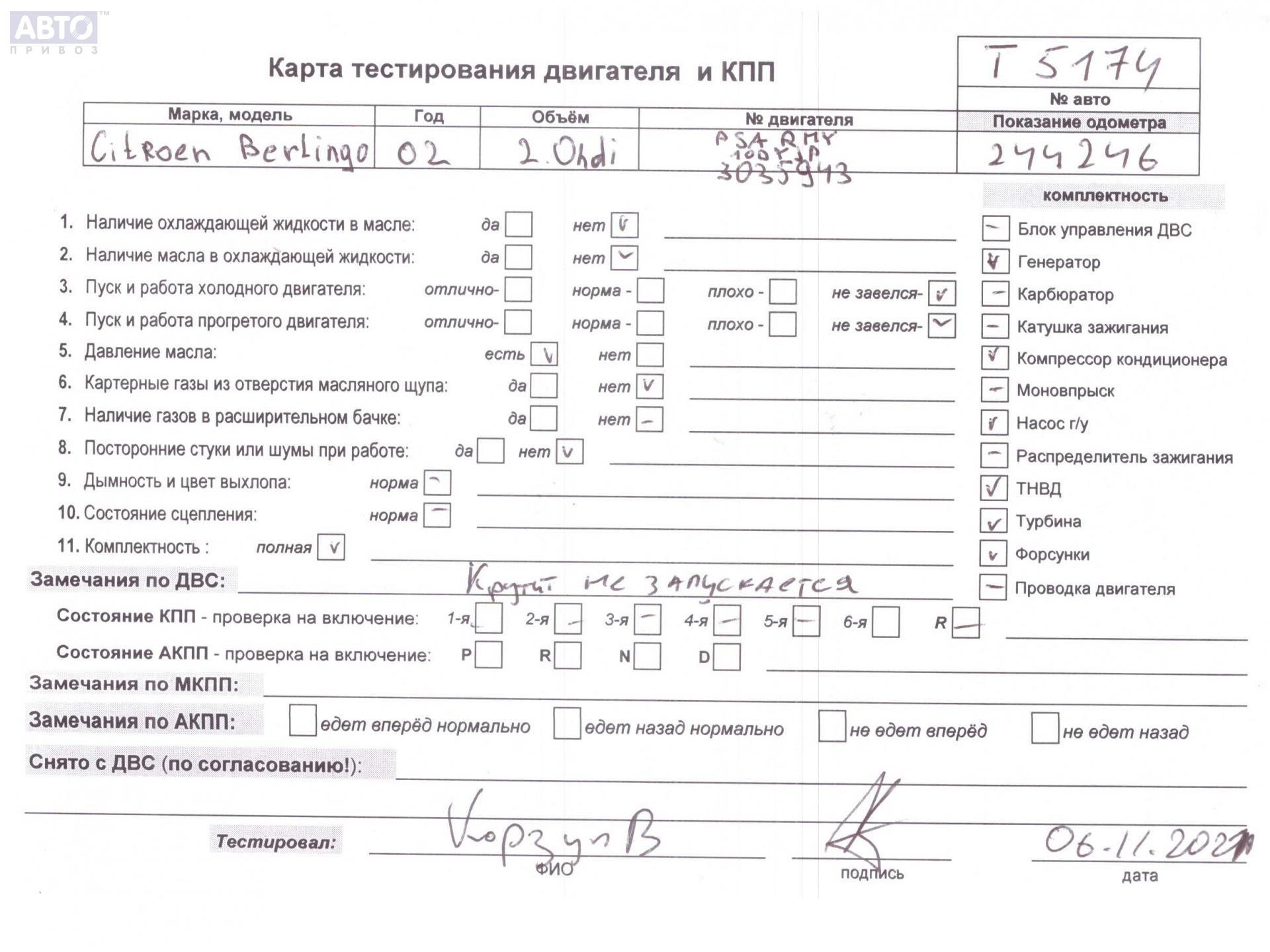 | Марка / Модель / Год: | Citroen Berlingo (1996-2002) 2002 |
