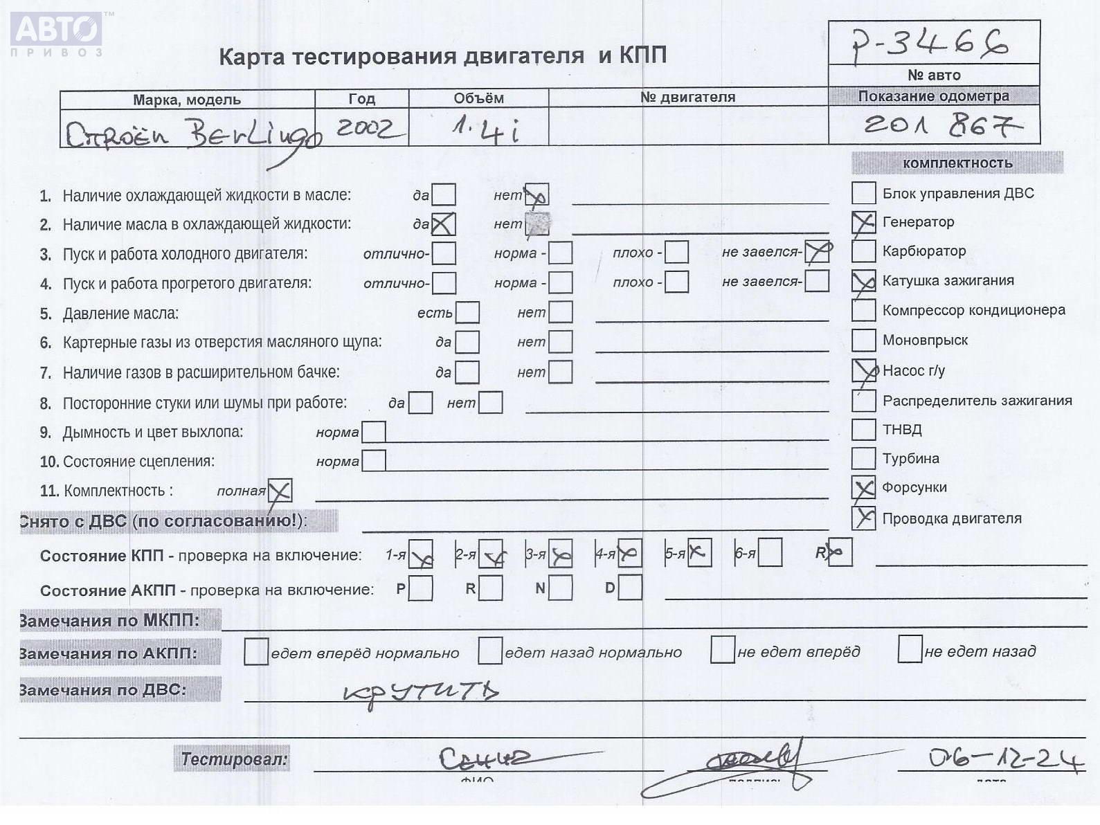 | Марка / Модель / Год: | Citroen Berlingo (1996-2002) 2001 |