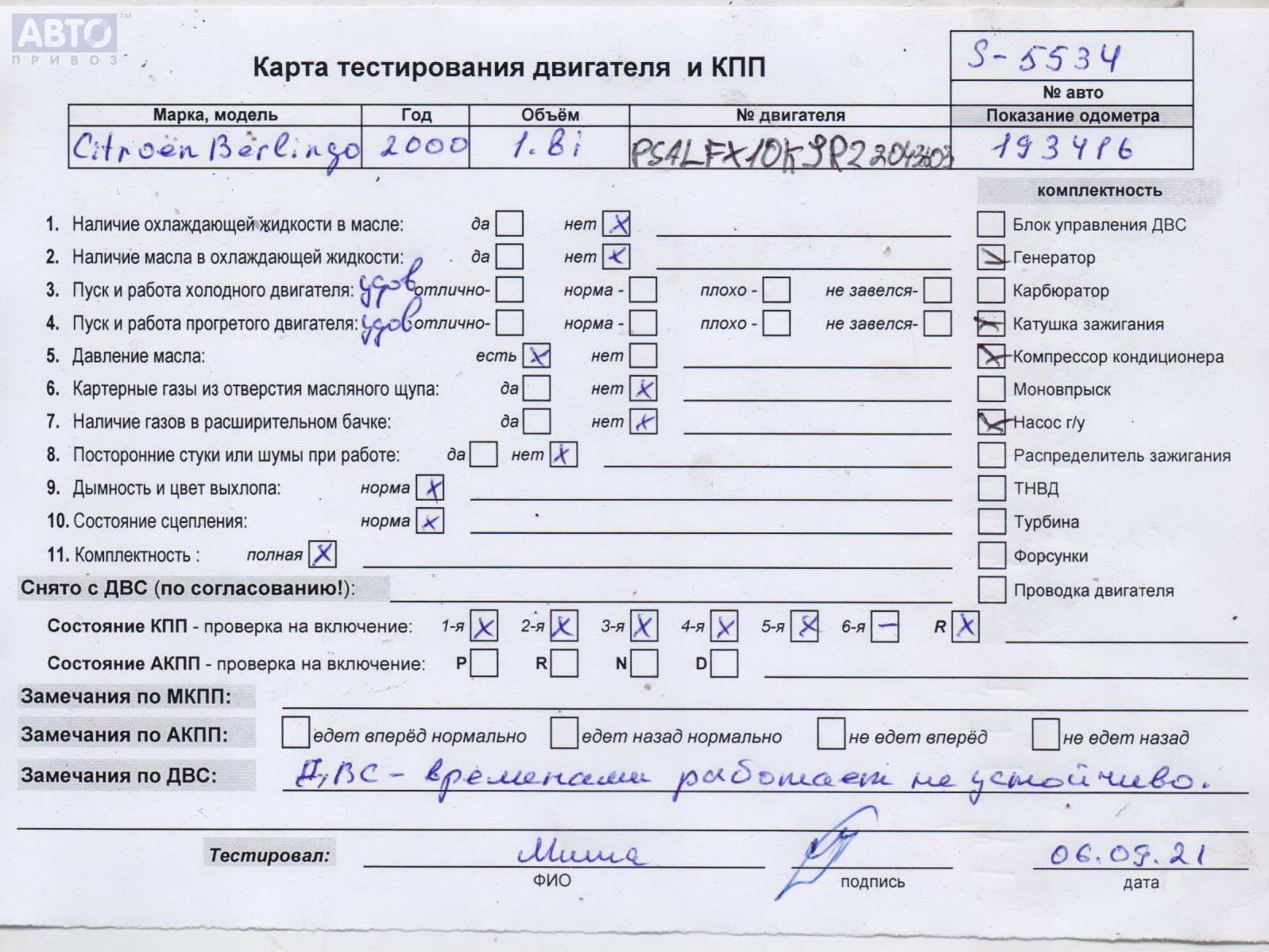 | Марка / Модель / Год: | Citroen Berlingo (1996-2002) 2000 |