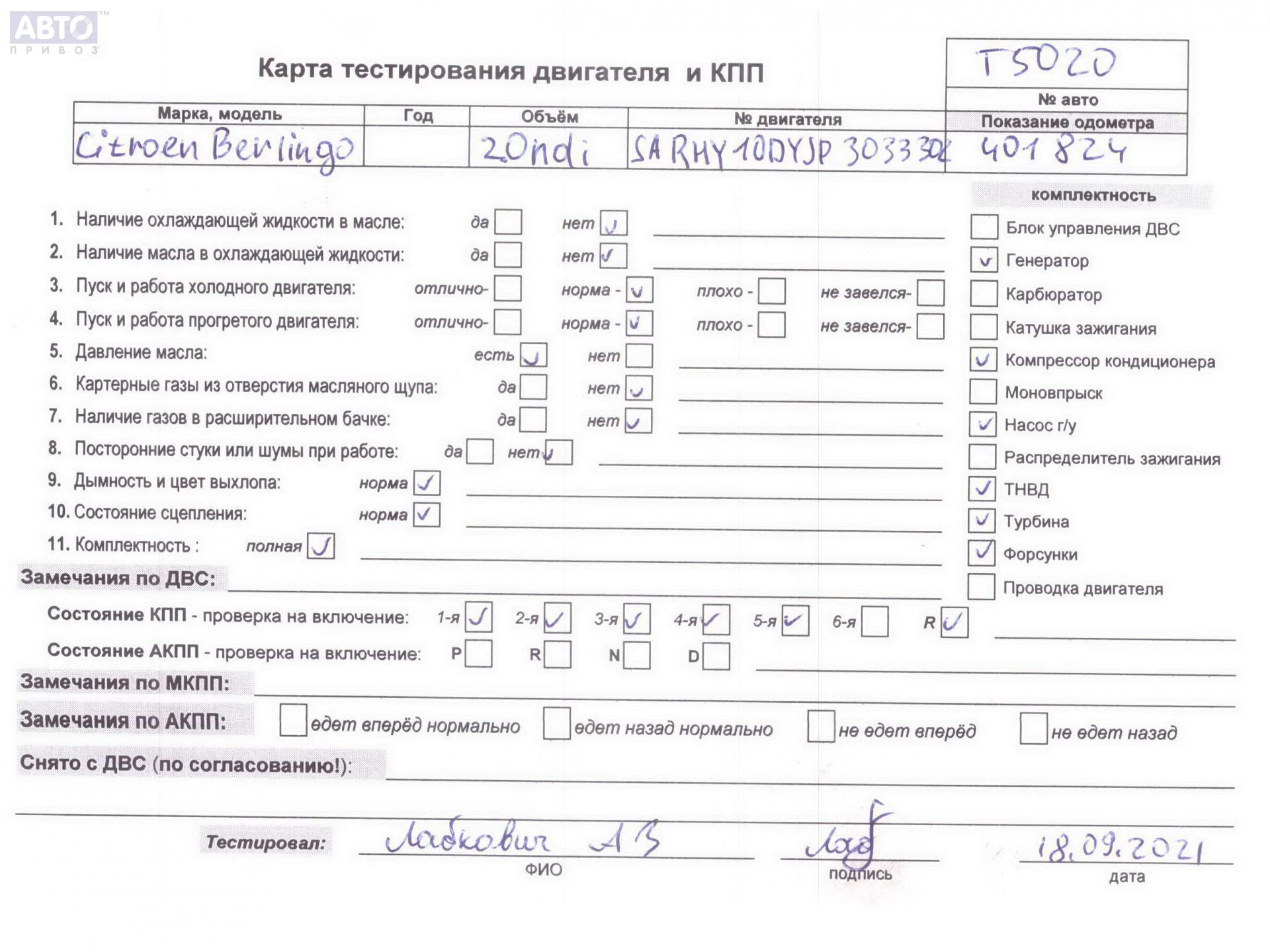 | Марка / Модель / Год: | Citroen Berlingo (1996-2002) 2001 |