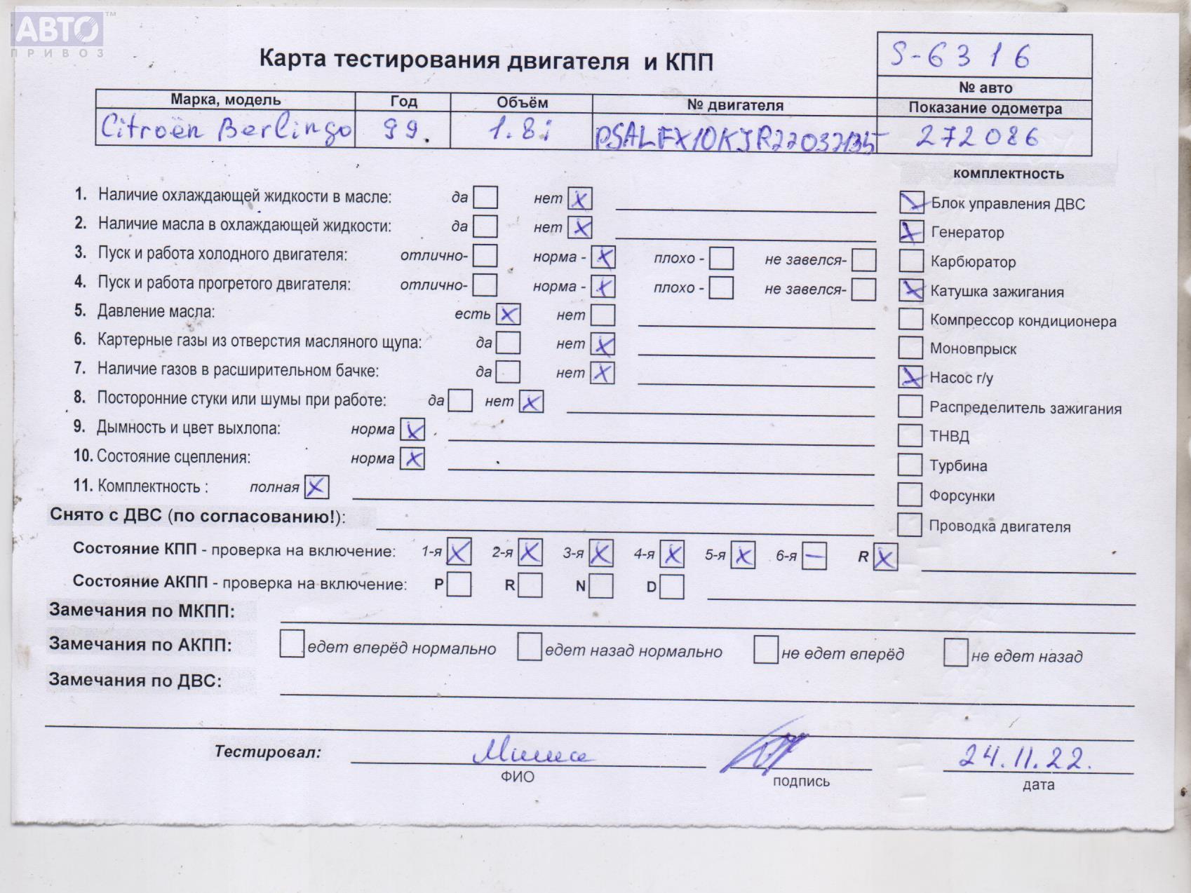 | Марка / Модель / Год: | Citroen Berlingo (1996-2002) 1999 |