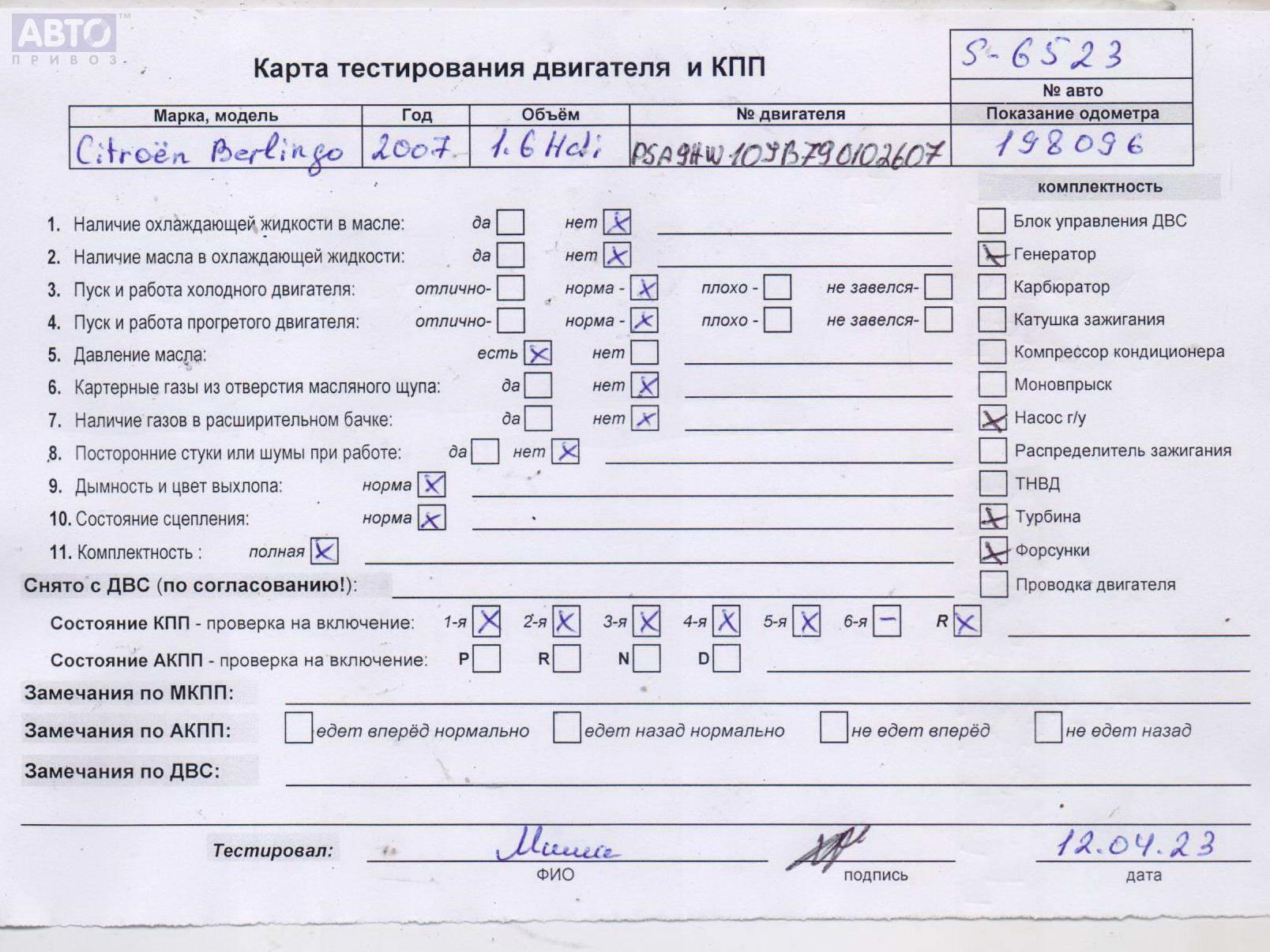 | Автомобиль / VIN: | S6523 VF7GB9HWC94340917 |