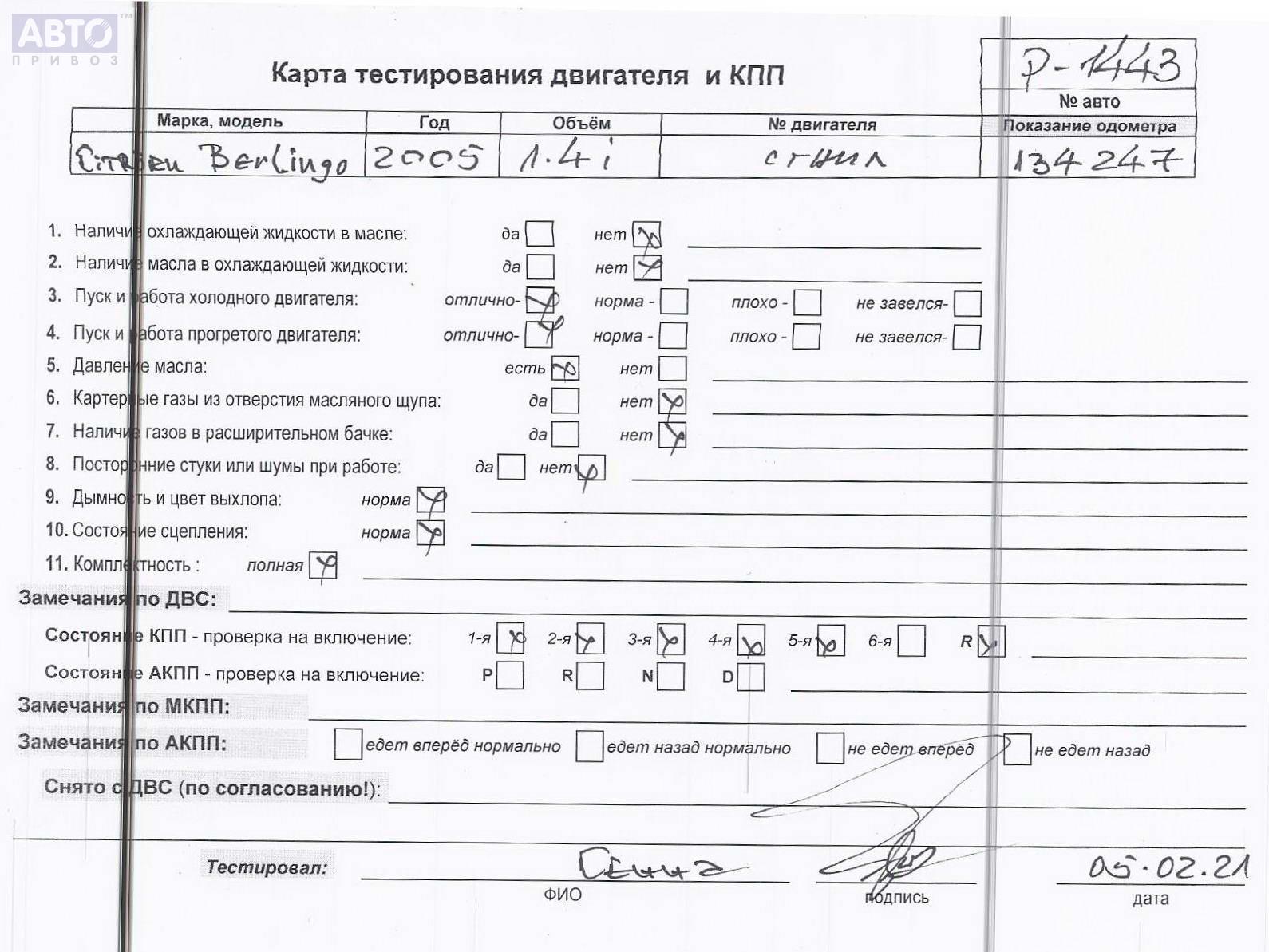 | Марка / Модель / Год: | Citroen Berlingo (2003-2007) 2005 |