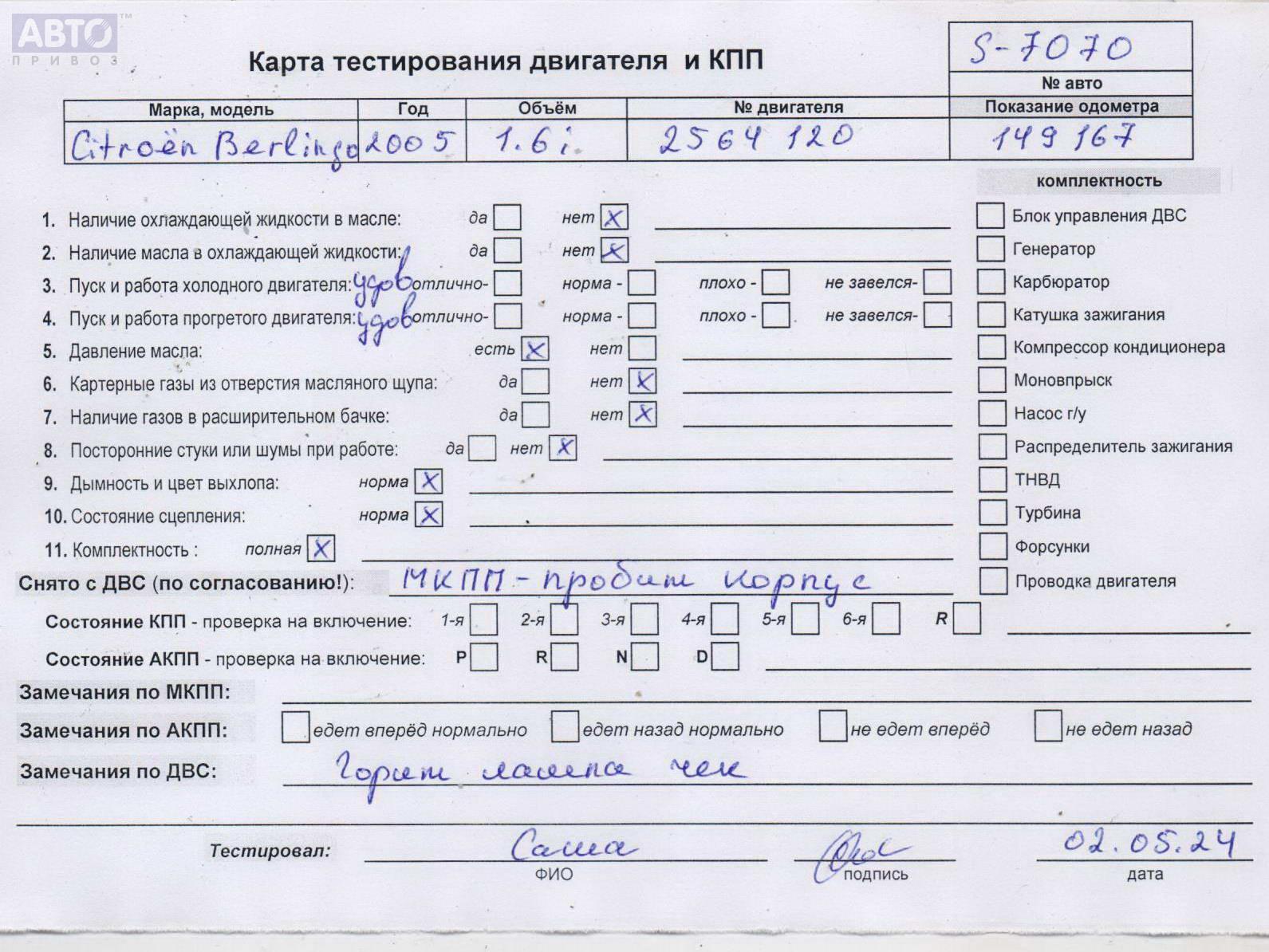 | Марка / Модель / Год: | Citroen Berlingo (2003-2007) 2005 |
