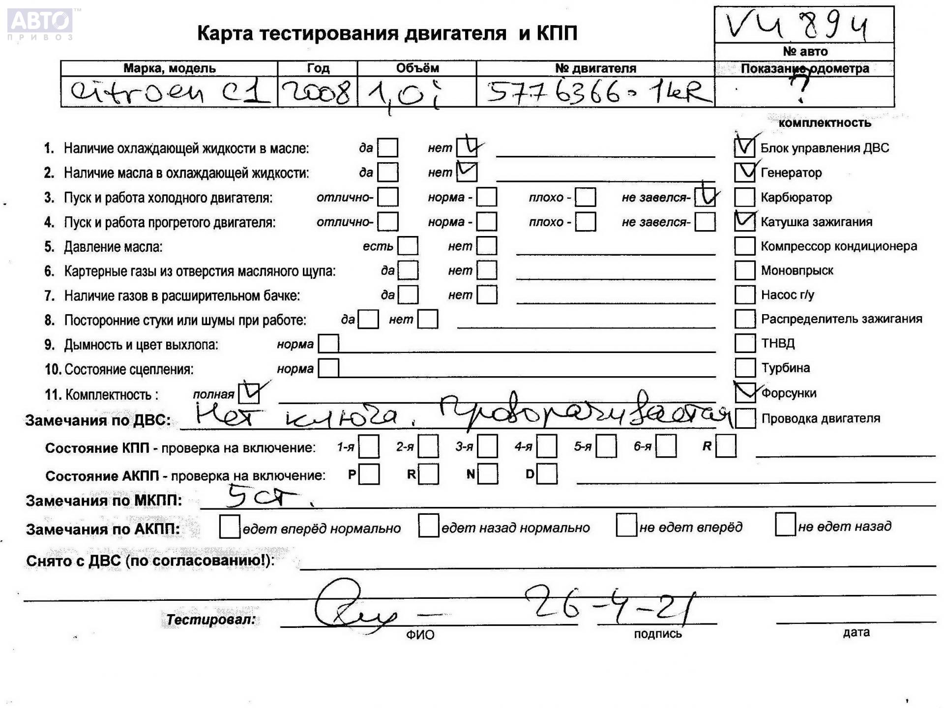 | Марка / Модель / Год: | Citroen C1 2008 |