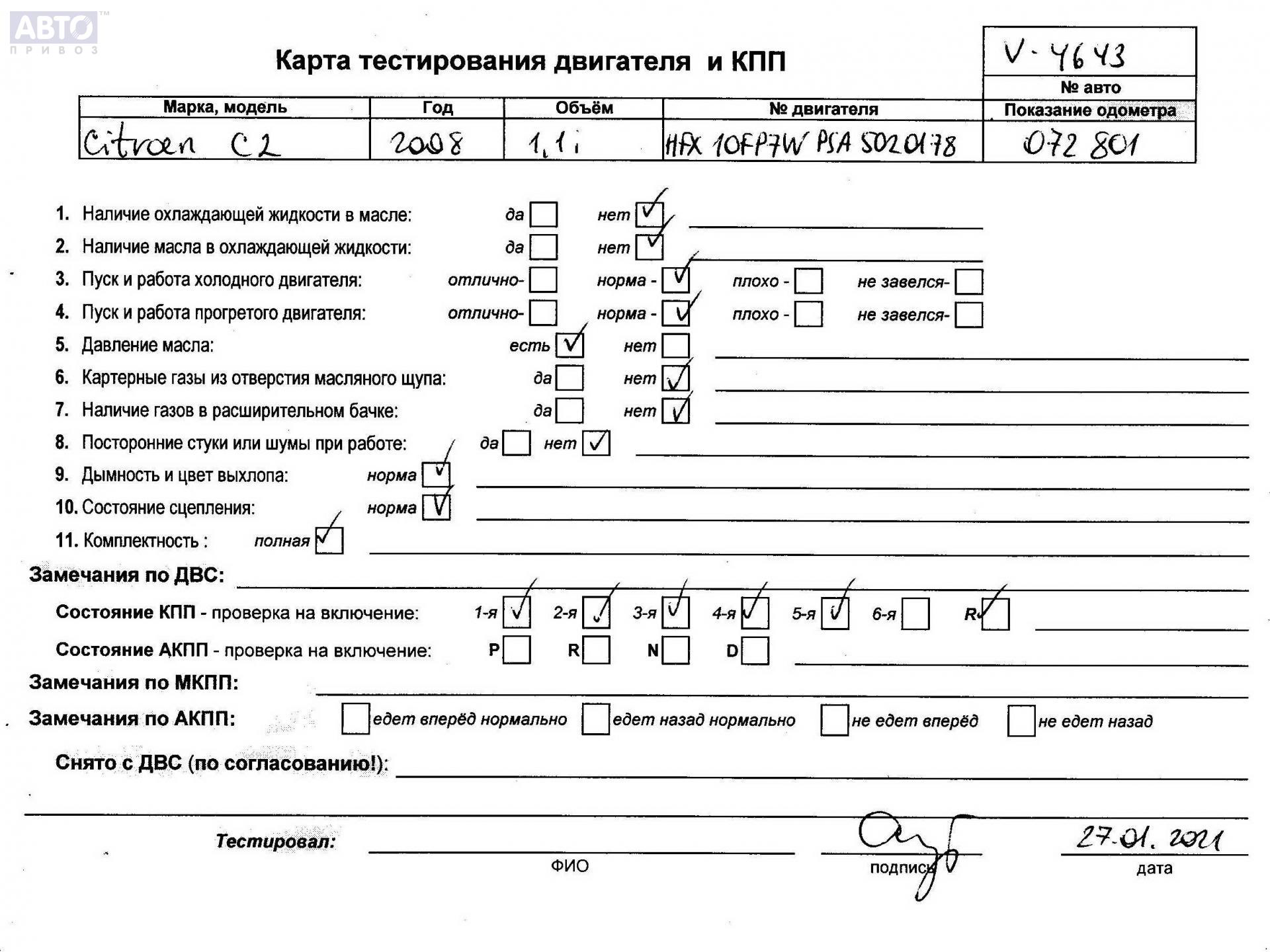 | Марка / Модель / Год: | Citroen C2 2008 |