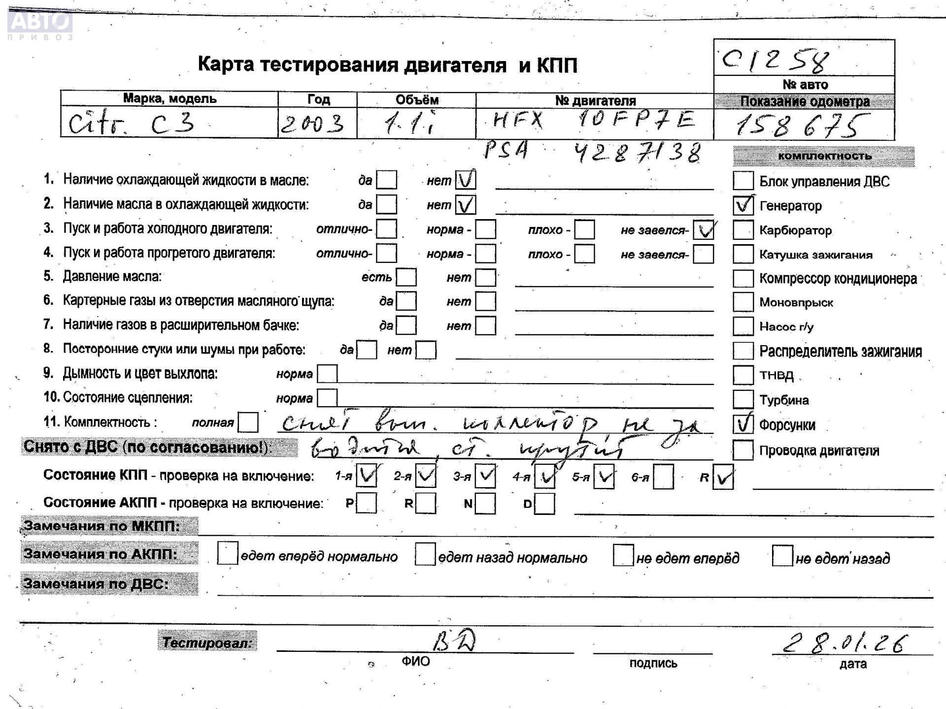| Автомобиль / VIN: | C1258 VF7FCHFXC26741189 |