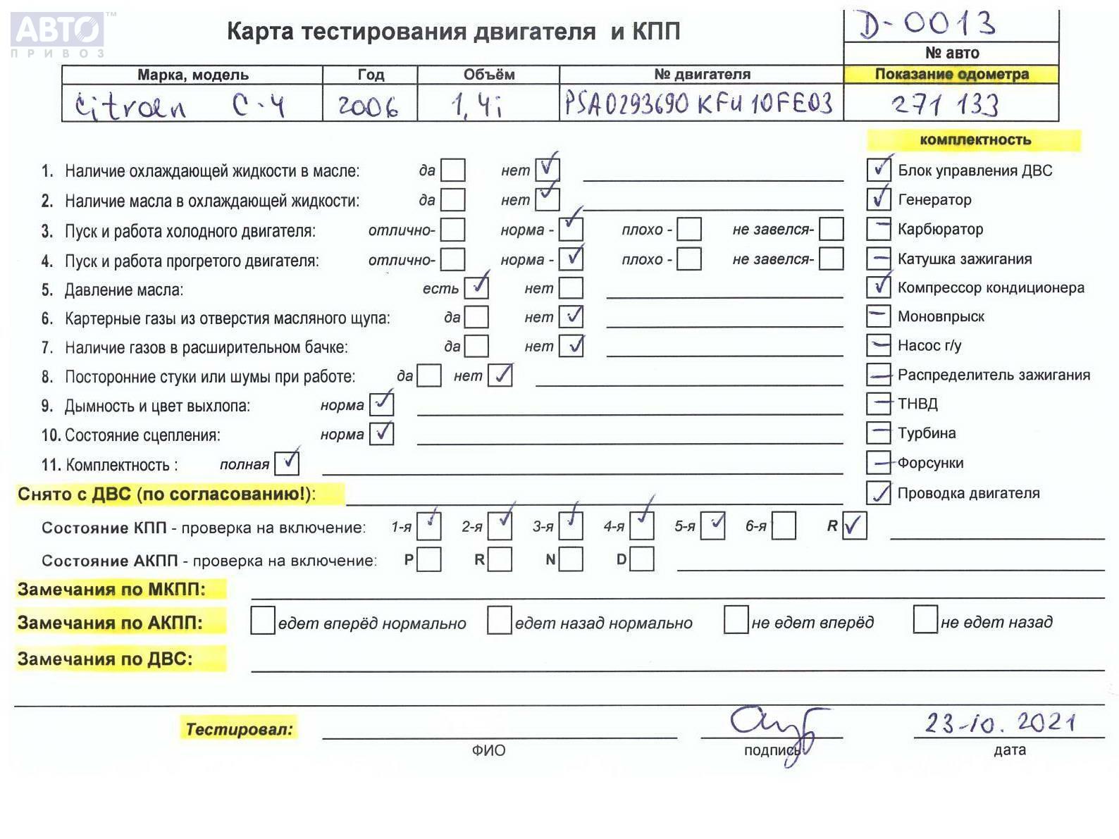 | Марка / Модель / Год: | Citroen C4 (2004-2010) 2006 |