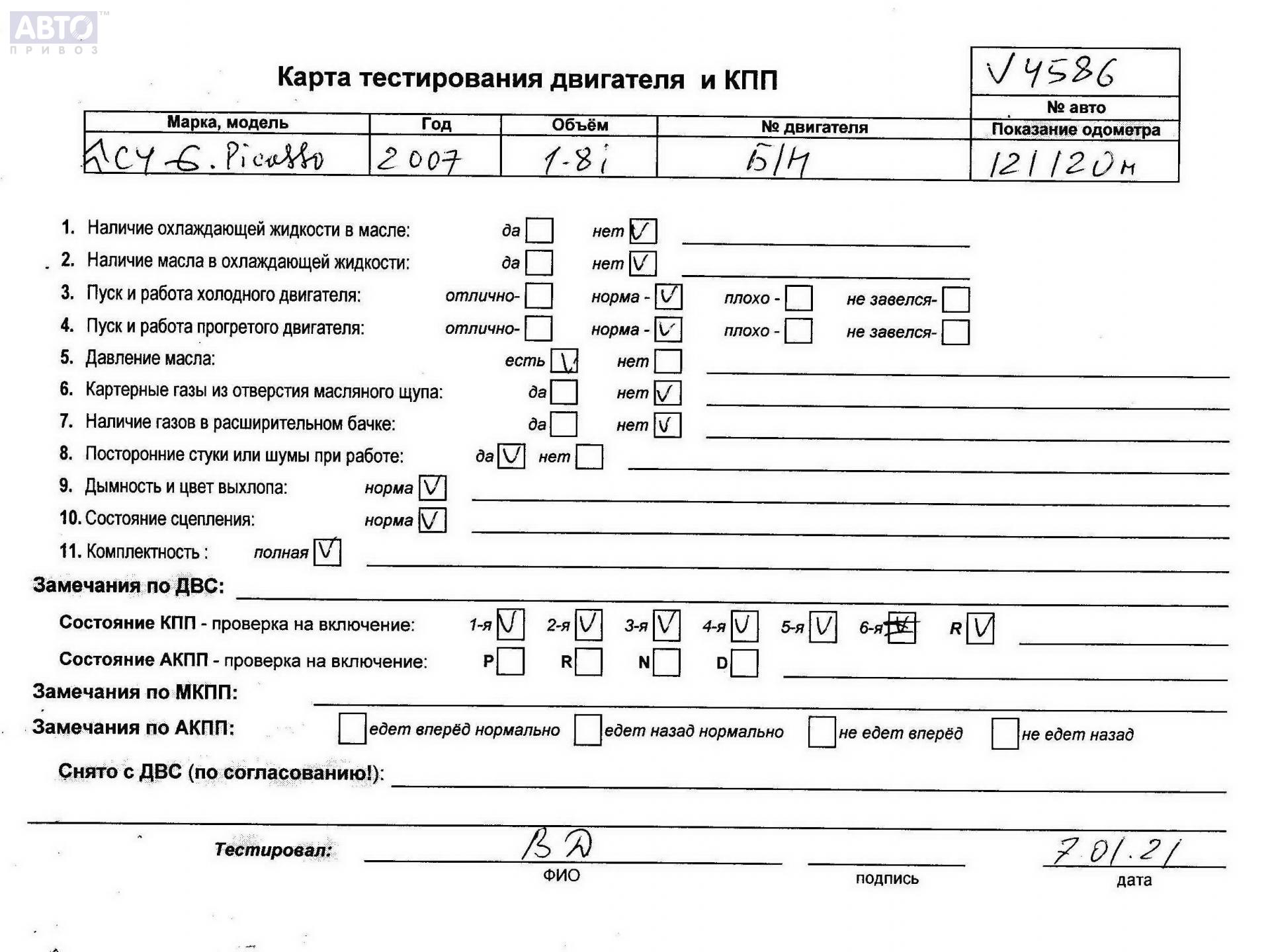 | Автомобиль / VIN: | V4586 VF7UA6FYC45263905 |