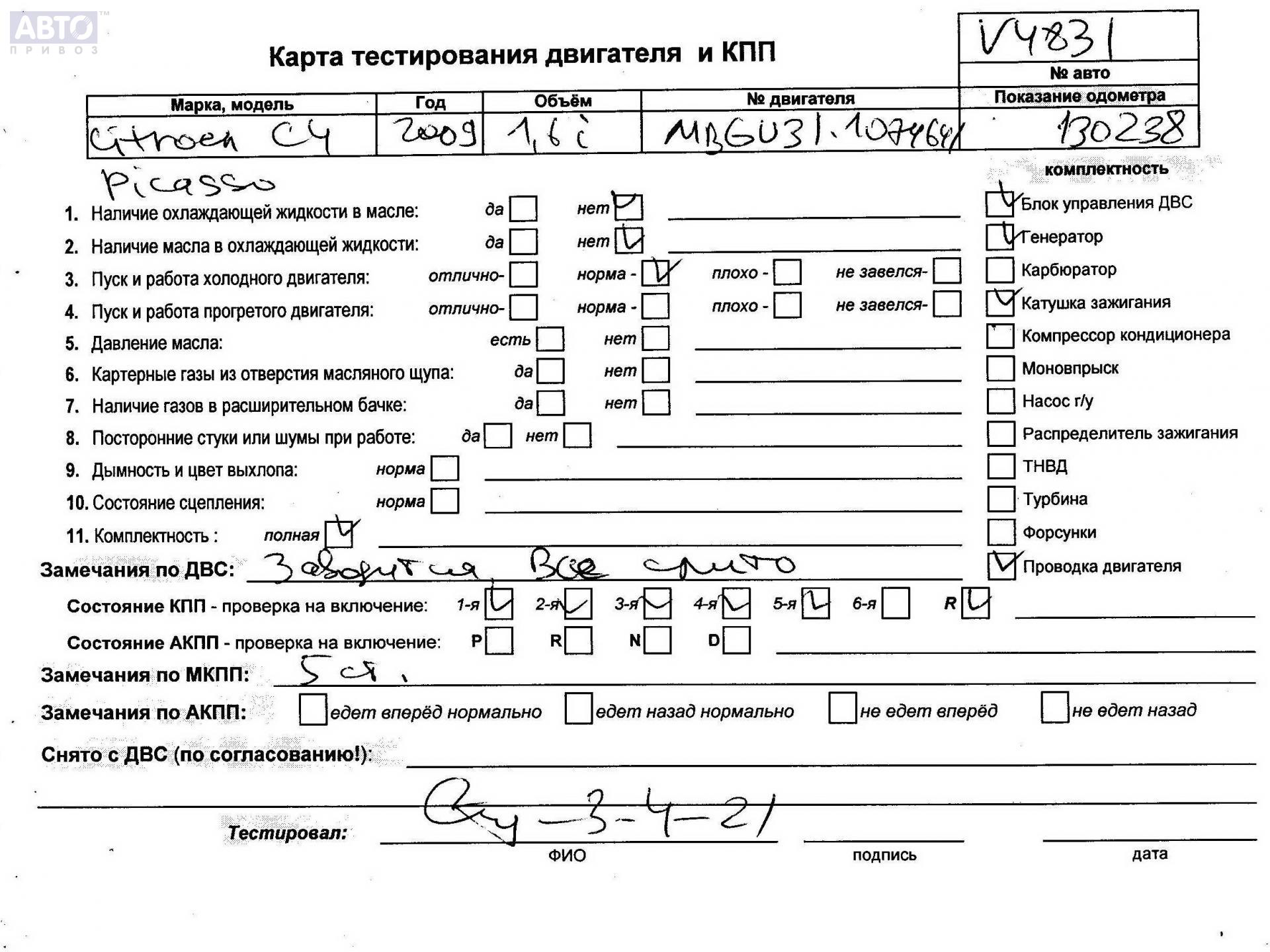 | Марка / Модель / Год: | Citroen C4 Grand Picasso 2009 |