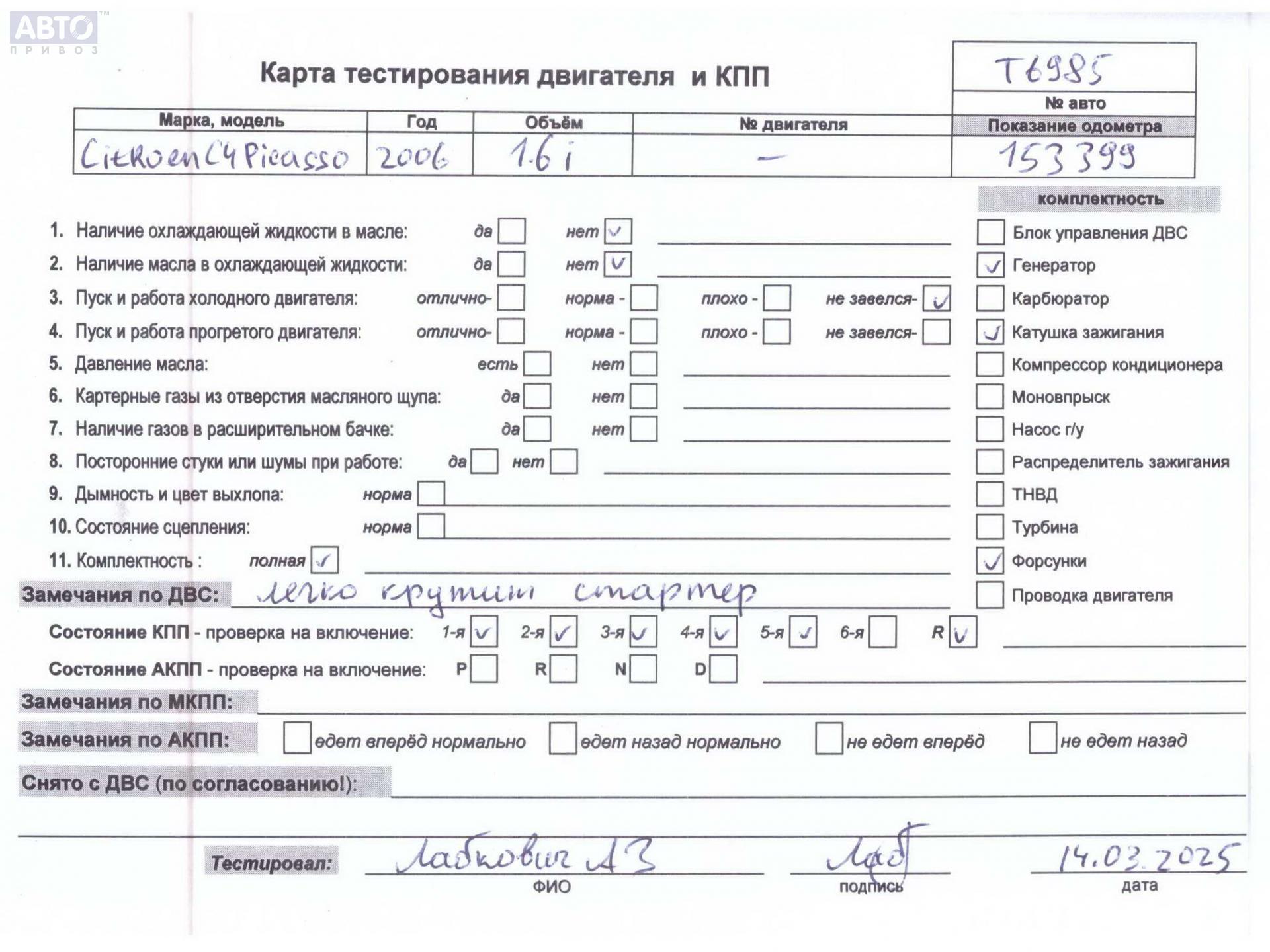 | Марка / Модель / Год: | Citroen C4 Picasso 2009 |