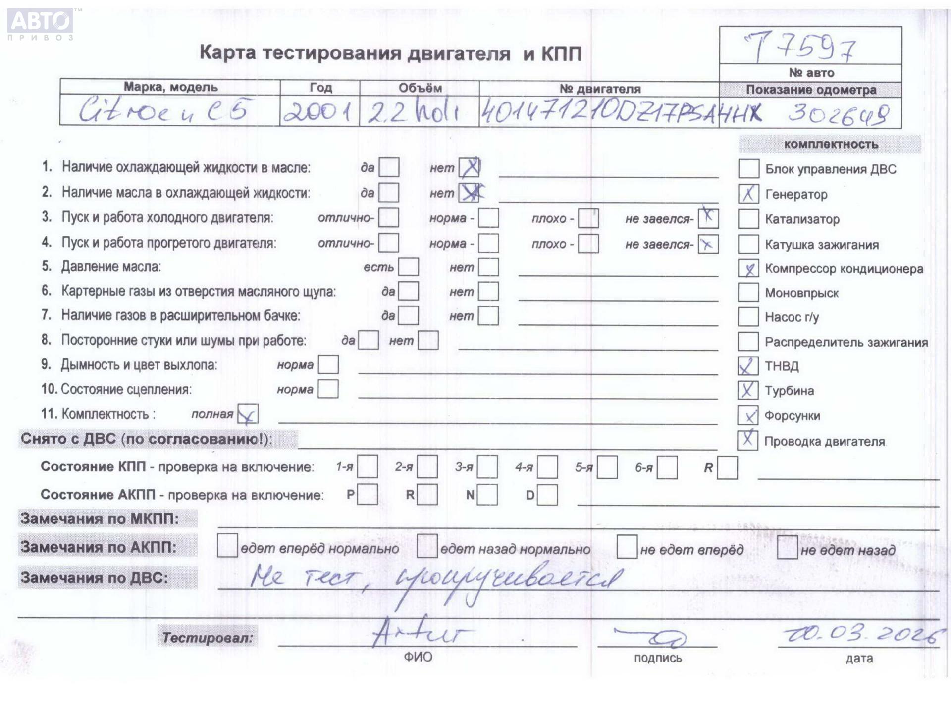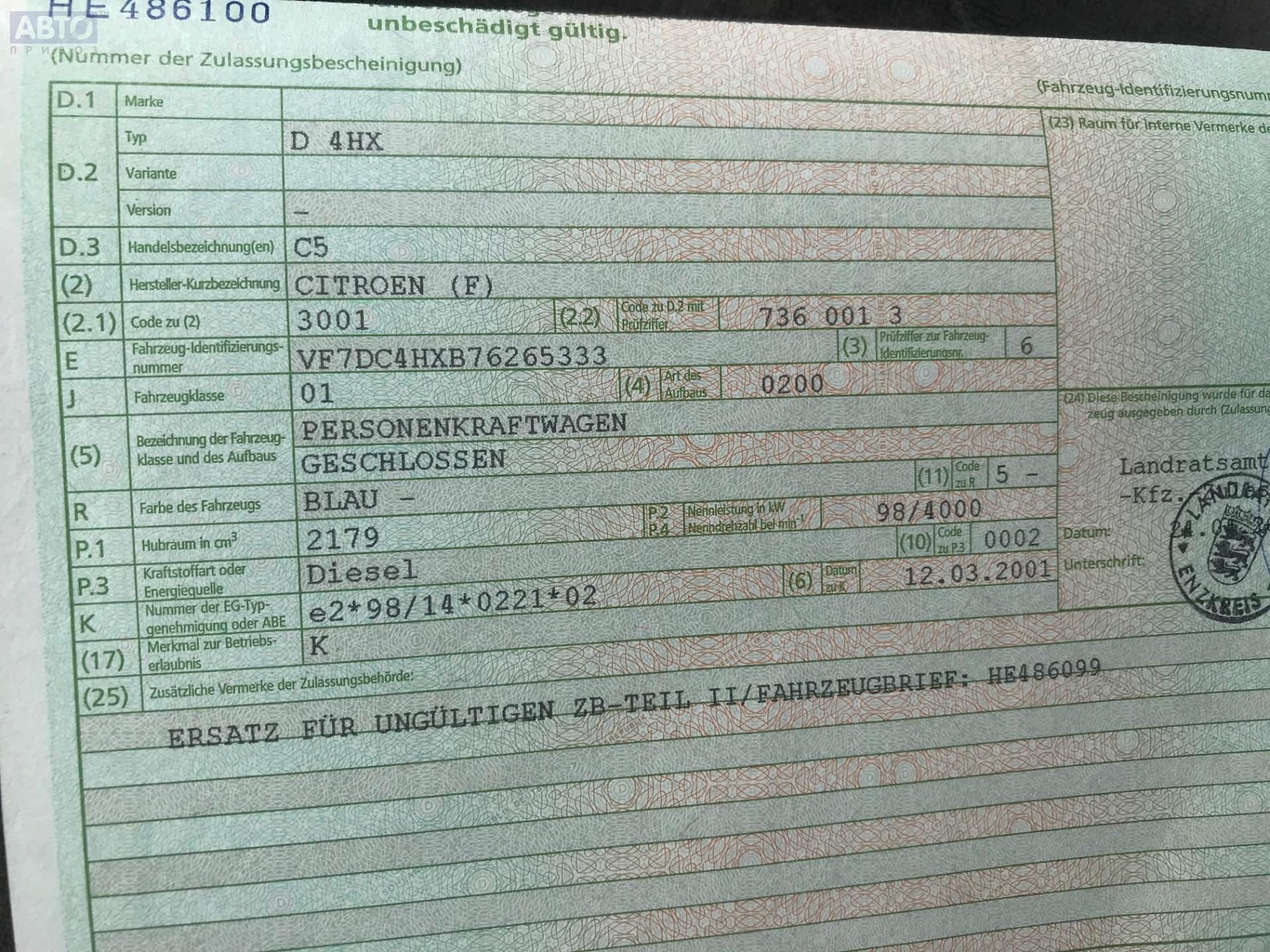 | Марка / Модель / Год: | Citroen C5 (2001-2008) 2001 |