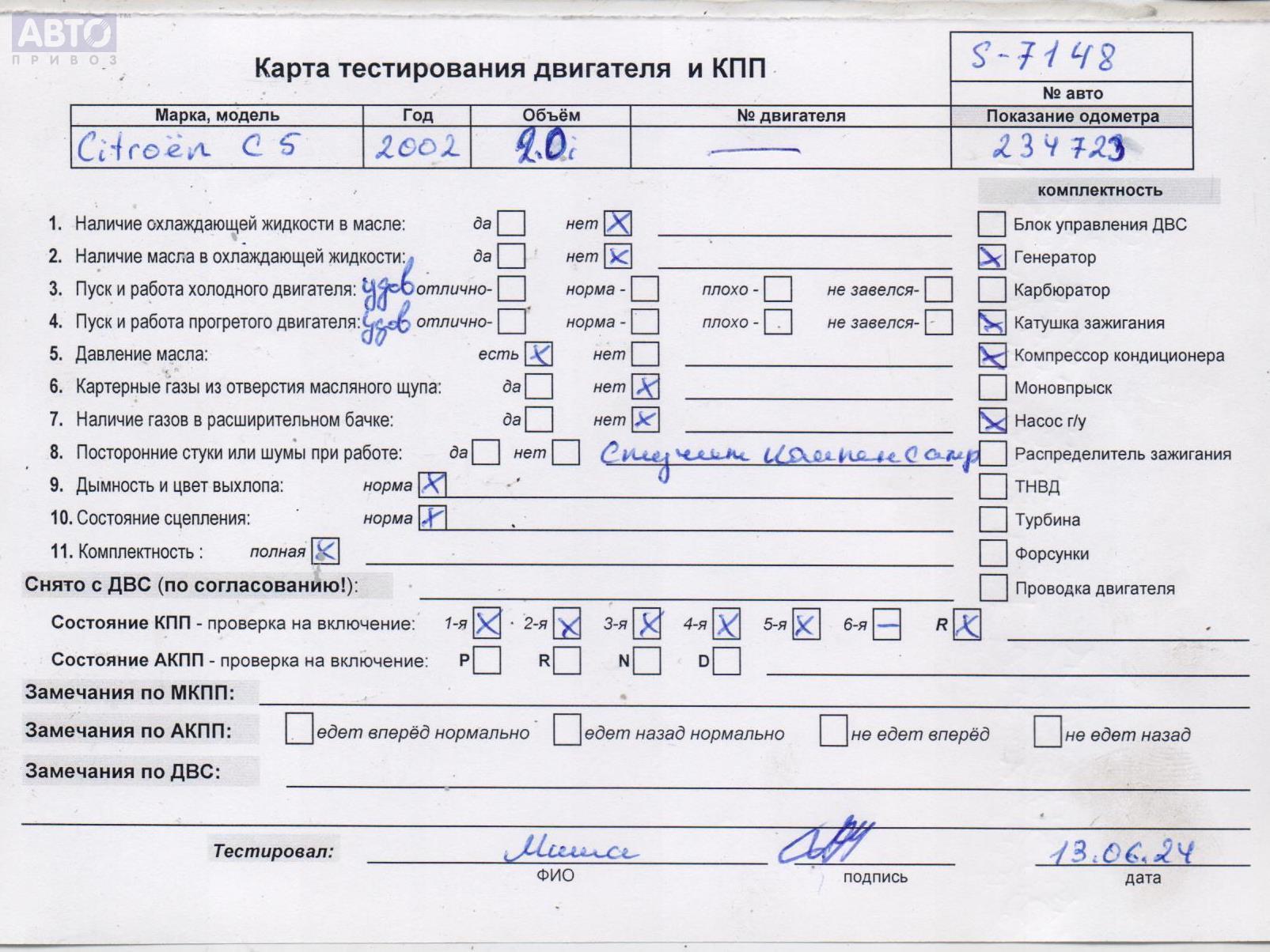 | Марка / Модель / Год: | Citroen C5 (2001-2008) 2002 |