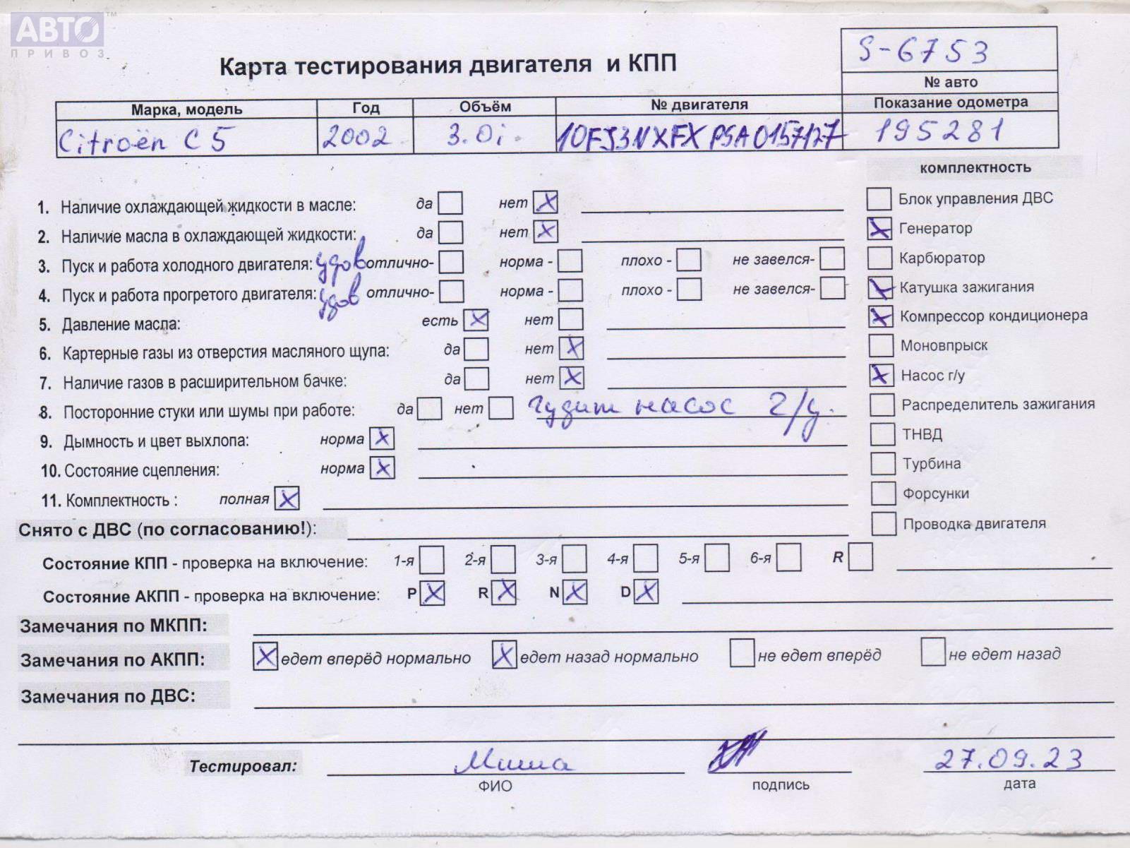 | Марка / Модель / Год: | Citroen C5 (2001-2008) 2002 |