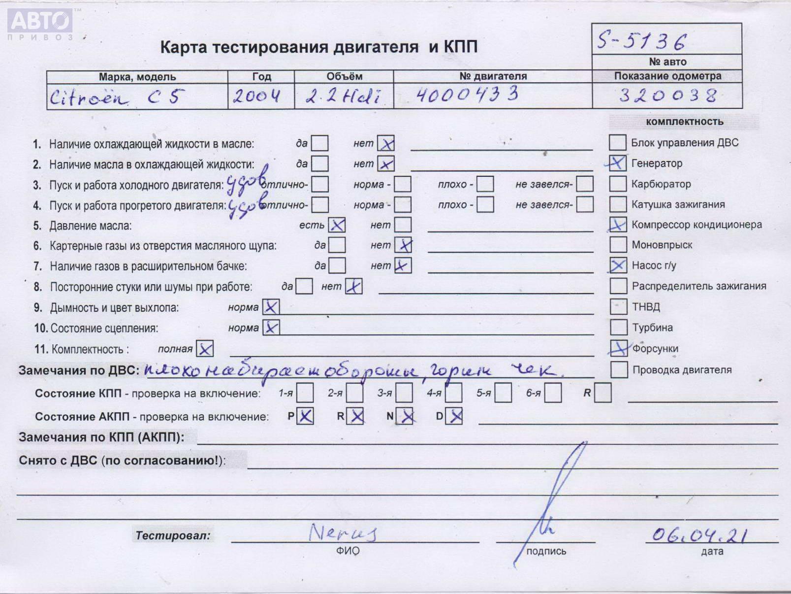 | Марка / Модель / Год: | Citroen C5 (2001-2008) 2005 |