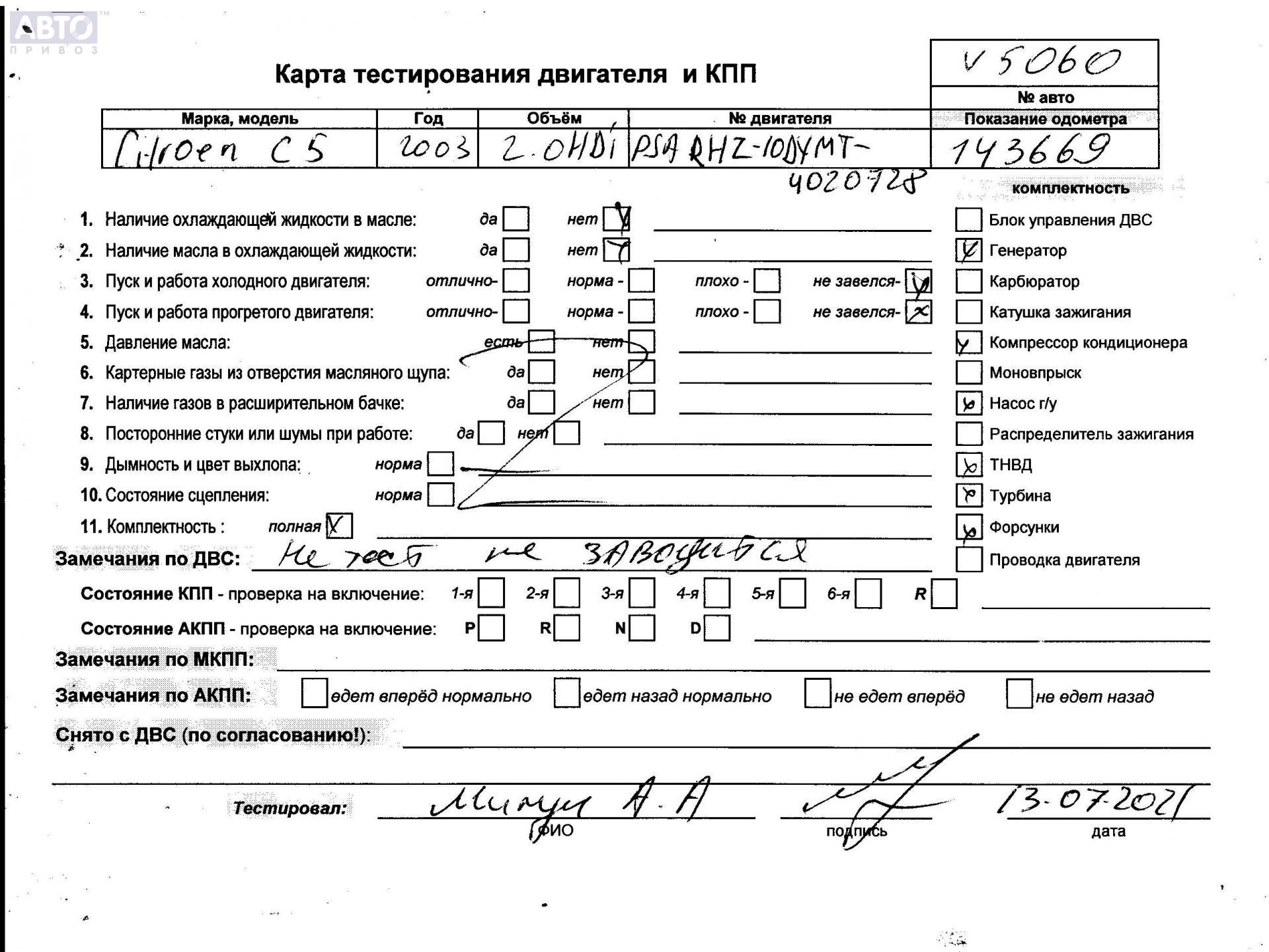 | Марка / Модель / Год: | Citroen C5 (2001-2008) 2003 |