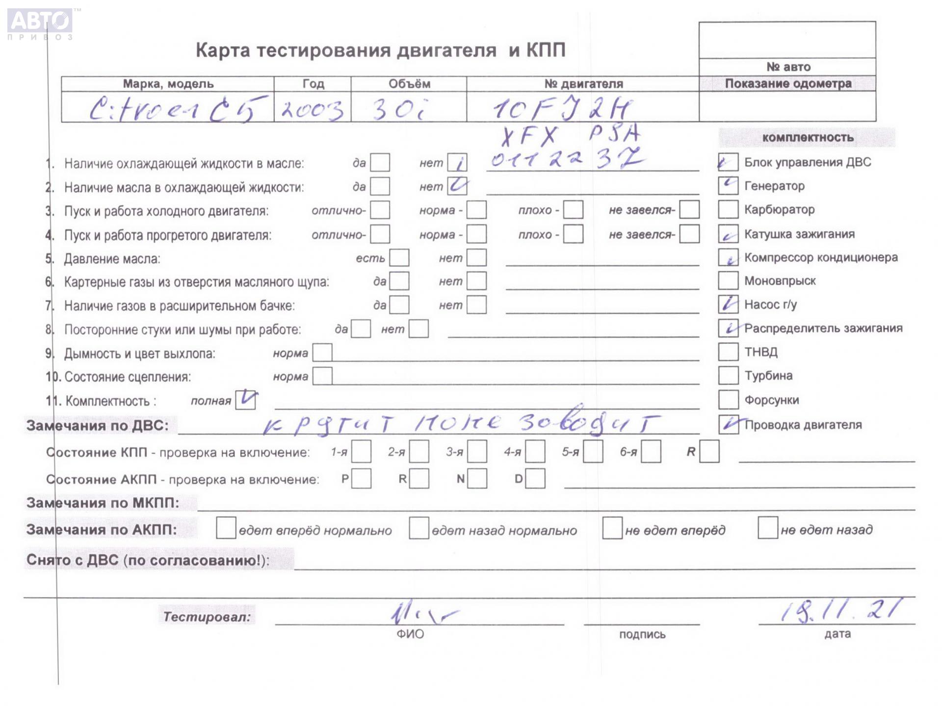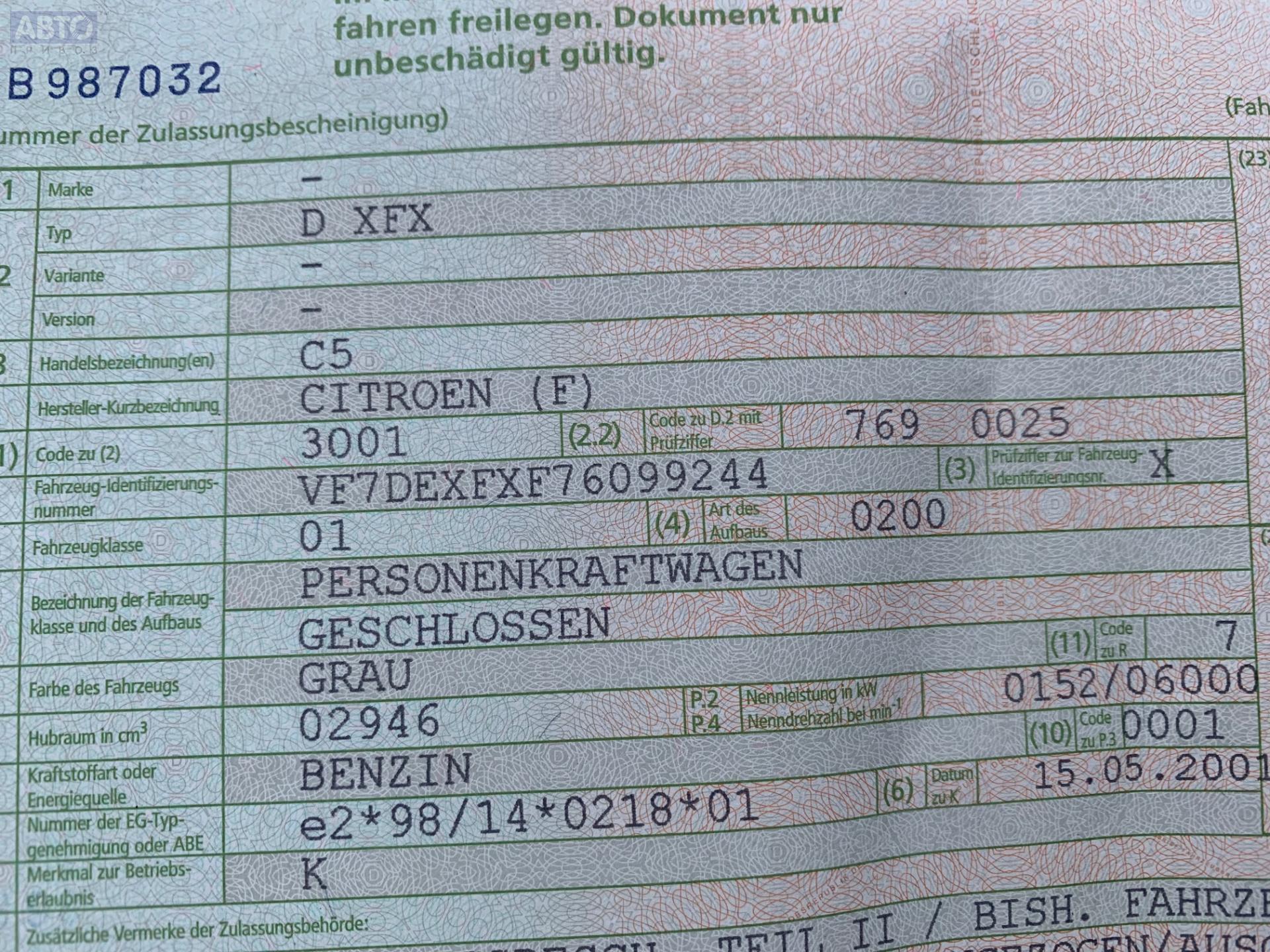 | Марка / Модель / Год: | Citroen C5 (2001-2008) 2001 |