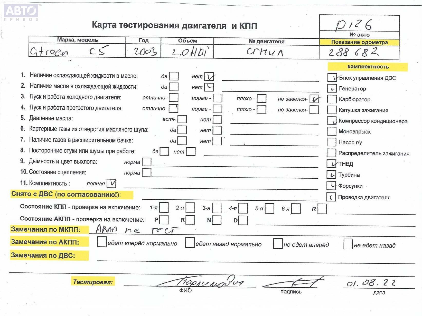 | Автомобиль / VIN: | D0126 VF7DERHSE76452457 |